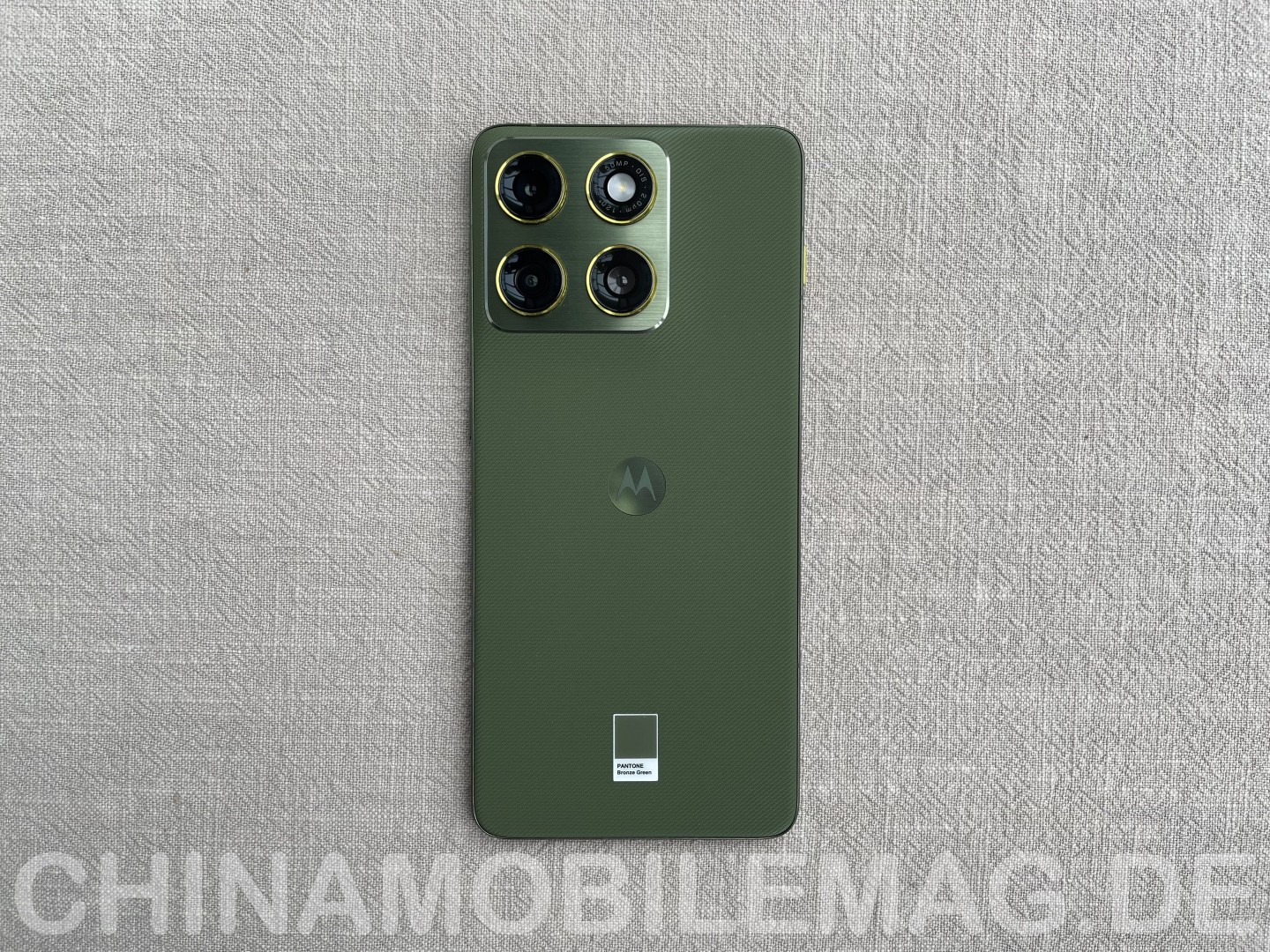 Das Motorola Edge 70 macht auf den ersten Blick einen hochwertigen Eindruck. Der schlanke Metallrahmen zeigt sich in gebürsteter Optik mit einer leichten Fase und verläuft ansonsten flach. Die Rückseite besteht aus Silikon und bietet eine ansprechende Haptik. Laut Hersteller soll das Finish an Nylon erinnern, und tatsächlich lässt sich eine gewisse Ähnlichkeit feststellen. Die Rückseite ist flach gestaltet und geht mit einer angenehmen Kantenrundung in den Rahmen über, wodurch das Smartphone gut in der Hand liegt. Der Kamerabuckel präsentiert sich in der typischen Motorola-Manier mit einem abgerundeten Auswuchs aus dem Rückseitenmaterial. Die Fläche des Buckels ist beim Edge 70 allerdings mit einer Kunststoffoberfläche in gebürsteter Optik versehen. Die Kameralinsen stehen zusätzlich hervor.