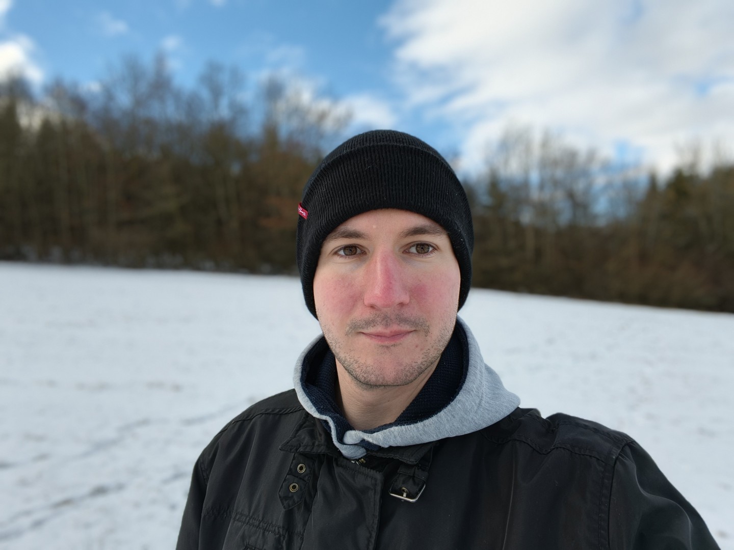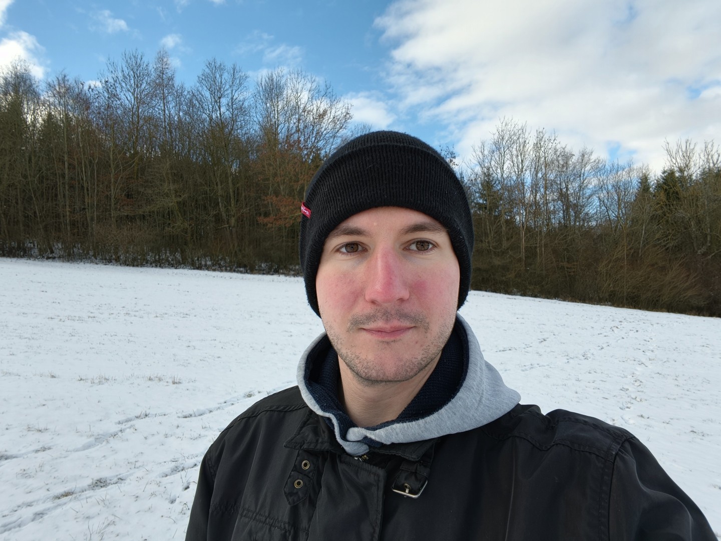Die Frontkamera nutzt beim Find X9 Pro denselben Sensor wie die Ultrawide Linse (JN5) inklusive Autofokus. Bei Tageslicht im Freien entstehen sehr gute Fotos. Sie fallen sehr scharf und detailliert aus, durch den Autofokus auch bei variierendem Abstand. Die Farben wirken schön und natürlich, auch hier zeigt sich ein perfekter Weißabgleich. Der Dynamikumfang fällt sehr gut aus. Selfies in Räumen werden geringfügig schärfer als beim Vivo, störendes Bildrauschen tritt nicht auf. Nachtfotos fallen ebenfalls etwas schärfer aus. Mit einer Straßenlaterne als Lichtquelle entstehen helle Selfies mit guter Detaildarstellung und ohne störendes Rauschen. Der Bildschirmblitz hellt brauchbar auf, hebt die Schärfe aber nicht nennenswert an, lohnt sich also vor allem bei fast völliger Dunkelheit.