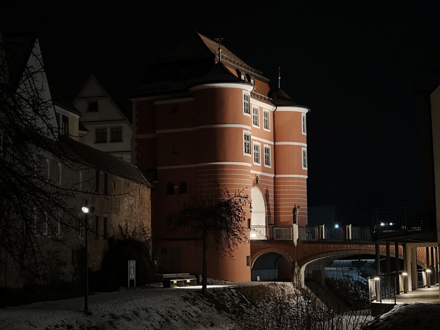 Bei Nachtfotos liegt das Oppo Find X9 Pro mit der Hauptlinse gleich auf mit dem Vivo X300 Pro. Die Lichtausbeute fällt identisch gut aus. Auch auf größere Distanz und bei schlechter ausgeleuchteten Motiven zeigt sich eine sehr gute Detaildarstellung. Der Spektralsensor sorgt auch hier für sehr gute Farbtreue und einen guten Weißabgleich. Zu warme oder kalte Farben durch Straßenbeleuchtung treten nicht auf. Der Night Mode (aktiviert sich automatisch) liefert auch freihändig scharfe Bilder.