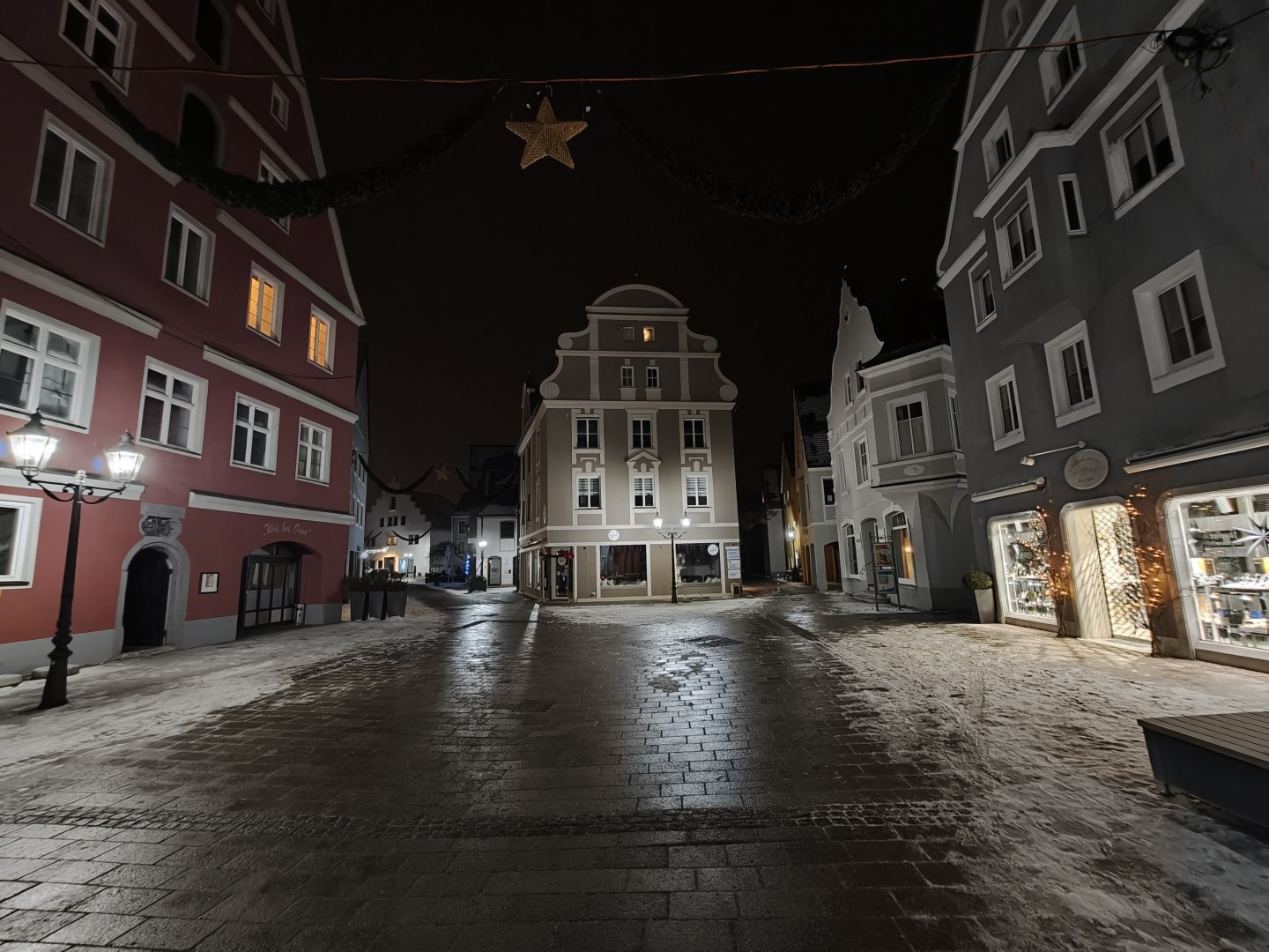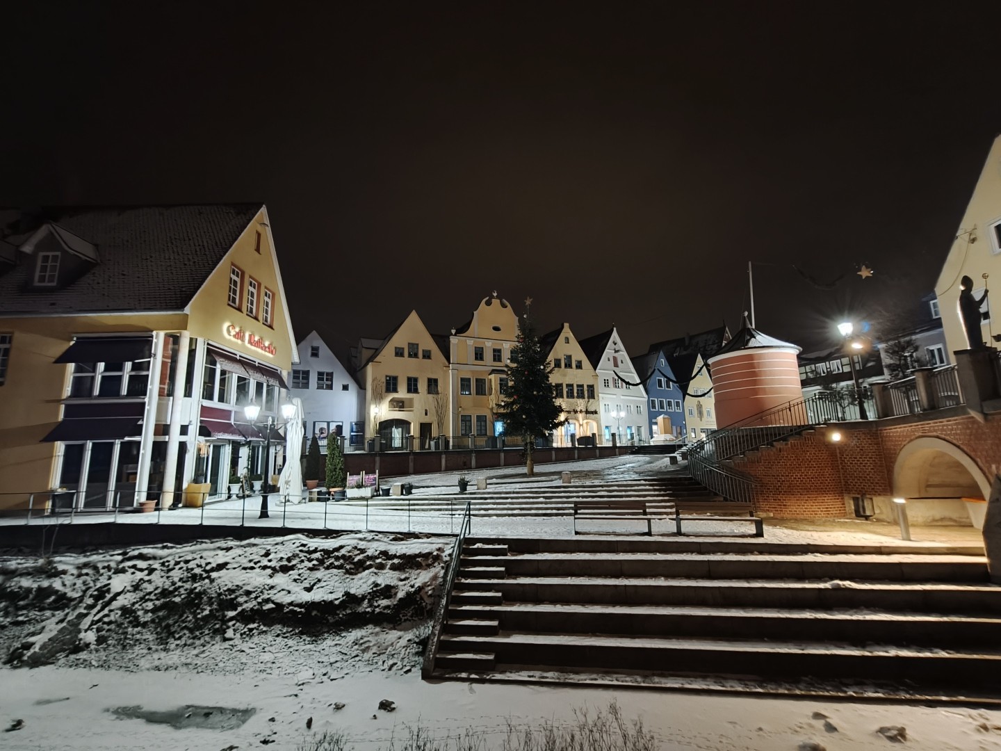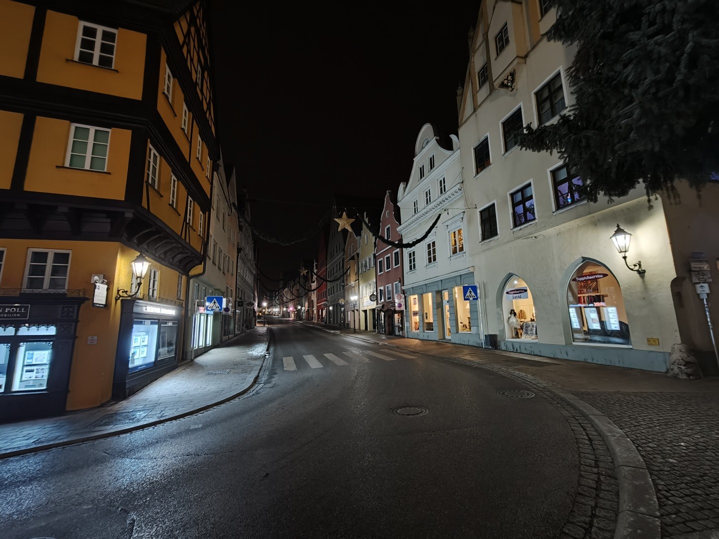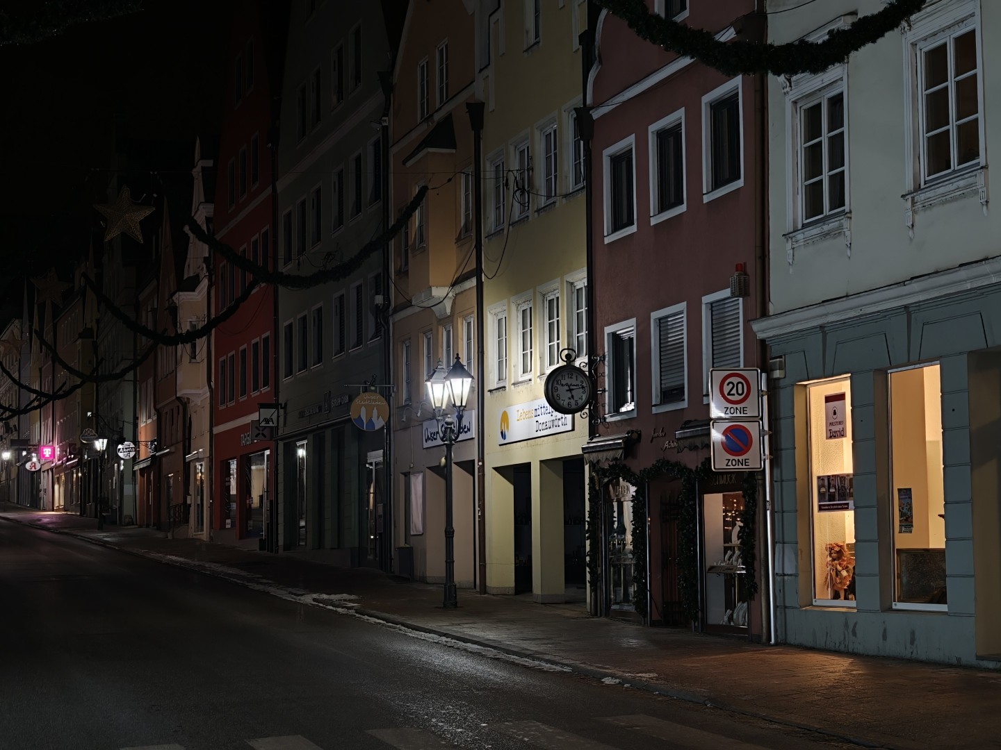 Bei Nachtfotos zeigt die Ultrawide Cam deutlich weniger Lichtausbeute als die Haupt- und Tele-Linse. Sehr dunkle Bildbereiche werden teils geschluckt. Die Detaildarstellung fällt vor allem auf etwas größere Distanz deutlich weicher aus. Insgesamt liefert sie aber trotzdem brauchbare Qualität bei Nacht. Auch bei Nacht entstehen schöne natürliche Farben mit perfektem Weißabgleich. Schärfe und Rauschverhalten bleiben bei ausreichend Kunstlichtquellen brauchbar.