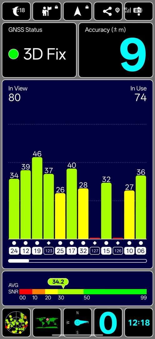 | Positionsbestimmung | GPS (L1+L5), A-GPS, Galileo (E1+E5a+E5b), GLONASS (G1), BDS (B1I+B1C+B2a+B2b), QZSS (L1+L5), NavIC (L5) |