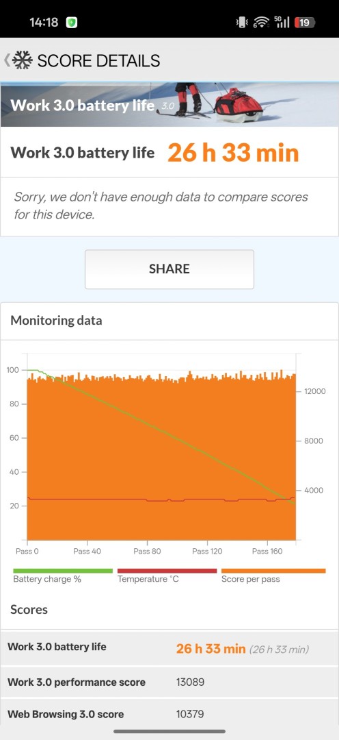 Im PC Mark Akku-Benchmark erreicht das Oppo Find X9 Pro ein Ergebnis von 26:33 Stunden bei 50 Prozent Bildschirmhelligkeit und WLAN Verbindung. Das ist nochmal erheblich mehr als beim Vivo (22:01 Stunden). Ein weiterer Pluspunkt für das Find X9 Pro: Es bietet auch in der offiziellen EU Version den großen Akku, also kein Unterschied mehr zwischen China und Global Version.