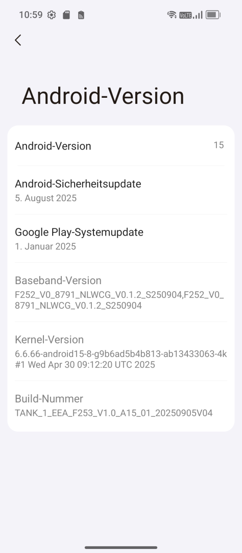 | Android Version | Android 15 Sicherheitspatch im Test: August 2025 |