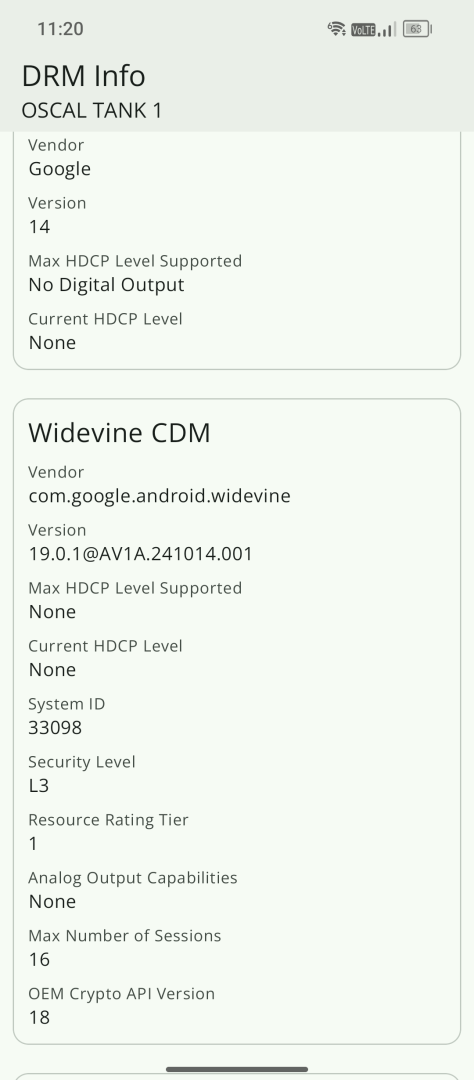 Die Google Zertifizierung ist auf dem Oscal Tank 1 vorhanden. Banking Apps und Google Dienste laufen entsprechend problemlos. Widevine DRM bietet leider nur Level 3, was maximal SD Auflösung beim Streaming von Diensten wie Netflix bedeutet. Das enttäuscht, da auch bei kleineren Herstellern Widevine L1 DRM mittlerweile auf dem Vormarsch ist.