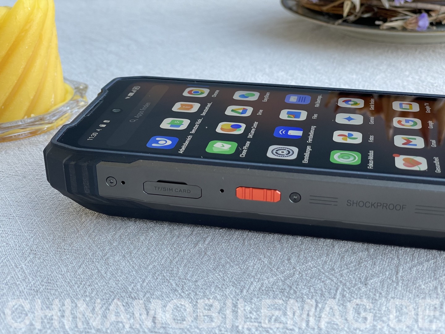 Das Displayglas des Oscal Tank 1 besteht laut Hersteller aus Corning Gorilla Glass 5. Basierend auf dem Test gibt es keinen Grund zum Zweifel. Keine Kratzer zeigten sich nach der Testphase im Alltag und auch der Kratztest mit einem Schlüssel verlief ohne Schäden. Ungeschützter Transport in der Hosentasche mit Schlüsselbund hinterließ ebenfalls keine Spuren auf dem Glas. Eine Beschichtung gegen Fingerabdrücke scheint allerdings zu fehlen. Zumindest werden Abdrücke recht schnell sichtbar und sind etwas schwerer restlos zu entfernen. Die Gleitfähigkeit fällt auch nicht ganz so gut aus wie bei Geräten mit Beschichtung, bewegt sich aber noch auf akzeptablem Niveau.