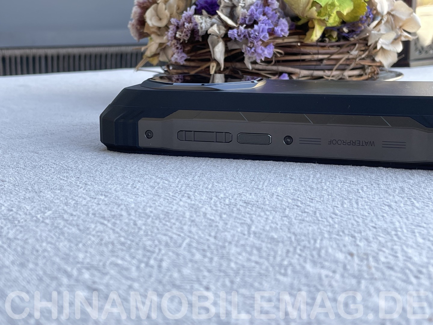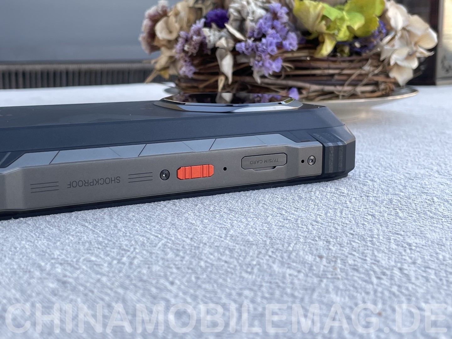 Die Verarbeitung des Oscal Tank 1 fällt grundlegend gut aus. Es gibt keinen ungewollten Überstand und keine groben Spaltmaße. Die Schutzkappe für den USB-C Port schließt sicher, während sich der SIM Tray ohne Werkzeug öffnen lässt, aber dennoch zuverlässig geschlossen bleibt. Das Gehäuse zeigt sich robust. Kein Knarzen oder Knacken tritt bei Belastung auf, selbst beim Biegen oder wenn man mit vollem Körpergewicht (80kg) darauf steht. Zaghafte Stürze aus 1m Höhe auf Granitboden überstand das Tank 1 ohne Schäden. Ein Wassertest im Waschbecken für eine Stunde verlief ohne Wassereintritt. Der Lautsprecher braucht danach einige Zeit um wieder uneingeschränkt zu funktionieren. Die Nutzung bei Regen funktionierte problemlos, ebenso bei Kälte getestet bis -12°C.