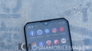 Die tropfenförmige Notch ist relativ unaufdringlich und gut ins System implementiert. Benachrichtigungs-Icons werden wie gewohnt in der Infoleiste dargestellt. Die Notch wäre allerdings nicht unbedingt nötig gewesen. Der obere Displayrand ist immer noch breit genug um die Kamera auch ohne Notch zu beherbergen. Hätte man sich hier etwas Mühe gegeben, hätte auch Oukitel das realisieren können. Man hätte den Rand auch einfach etwas dicker gestalten können, was optisch nicht gestört hätte, da die Symmetrie des Designs davon profitiert hätte. Der untere Displayrand ist nämlich ohnehin breiter als der Obere.