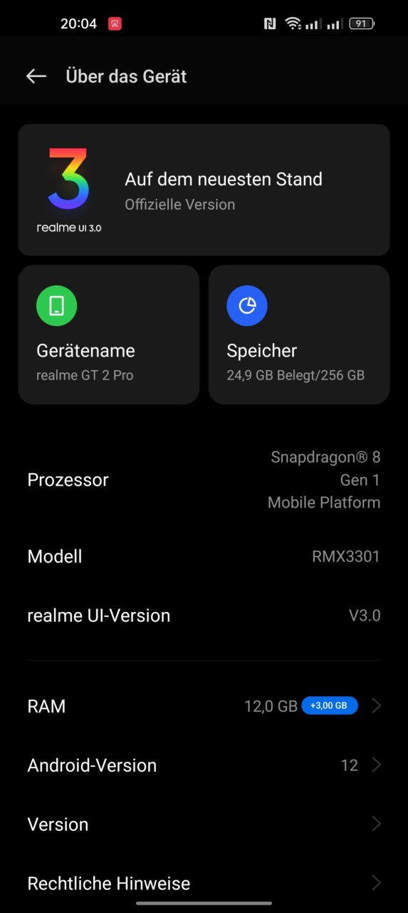 | Variante | Realme UI 3.0 Version im Test: RMX3301_11_A.104 |