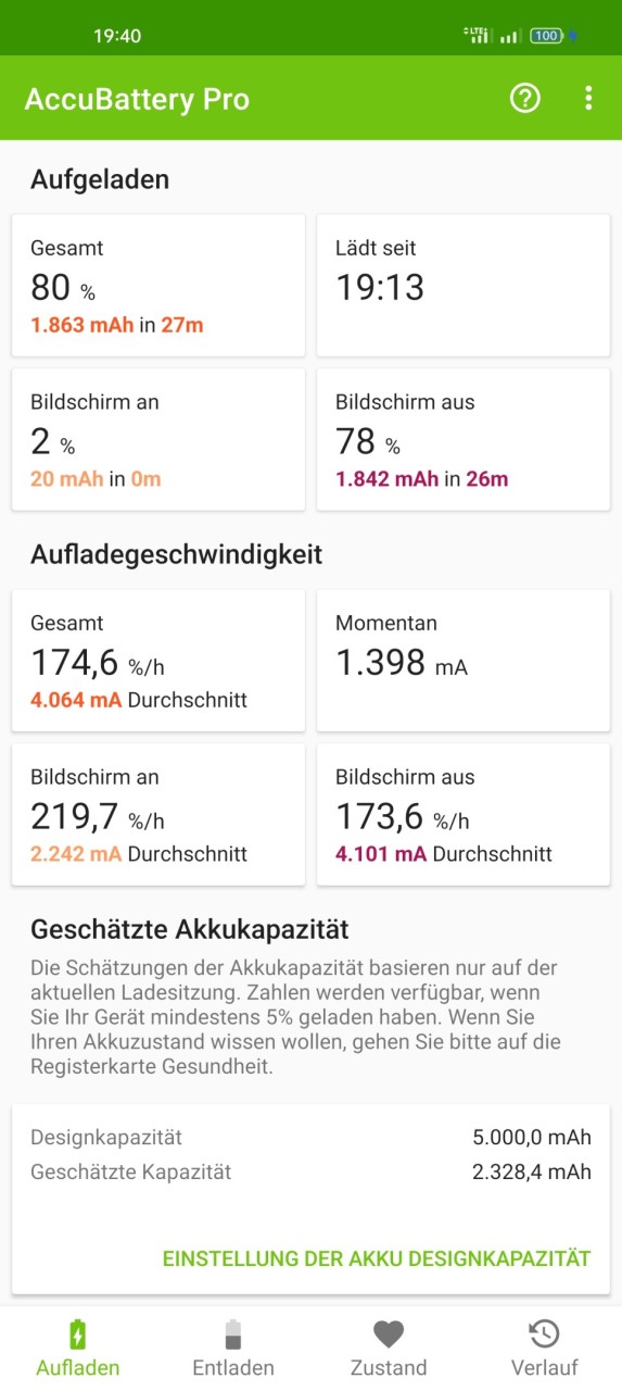 Der Akku nutzt die Größe vom Realme GT 2 Pro sehr gut aus und kommt so auf eine üppige Kapazität von 5.000mAh. Das und der im Alltagsgebrauch erfreulich effiziente Snapdragon 8 Gen1 macht sich dann in der Laufzeit überaus positiv bemerkbar. Trotz des hochauflösenden Displays, reicht der Akku völlig problemlos für einen Tag und sogar bis in die Nacht hinein. Das gilt auch dann, wenn man die 120Hz nutzt, die volle Displayauflösung nutzt und das Always-On Display tagsüber aktiviert hat. Wer an diesen Stellen ansetzt, kann natürlich auch etwas Energie sparen und noch ein Stück weit in den zweiten Tag hineinkommen.