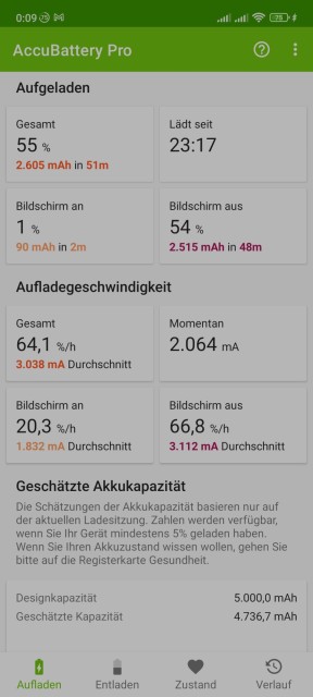 Lobenswert ist das relativ schnelle Fast-Charging. Das Redmi Note 11 kann mit maximal 33 Watt aufgeladen werden. Das passende Netzteil ist im Lieferumfang enthalten. Alternativ kann auch jedes beliebige USB-PD Netzteil genutzt werden. Im Test hat die Ladung von 20% auf 75% rund 51 Minuten und von 20% auf 100% rund eine Stunde und 16 Minuten gedauert. Für den Test wurde ein 48W USB-PD Netzteil eines Drittanbieters genutzt, da wir das Redmi Note 11 wie schon erwähnt ohne das Original-Zubehör erhalten haben.