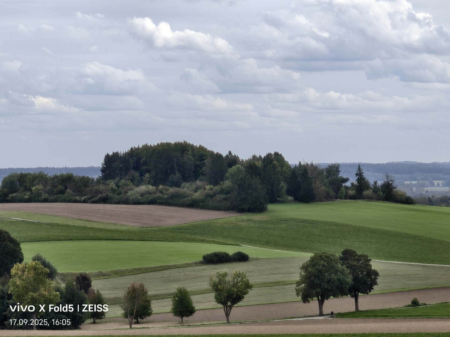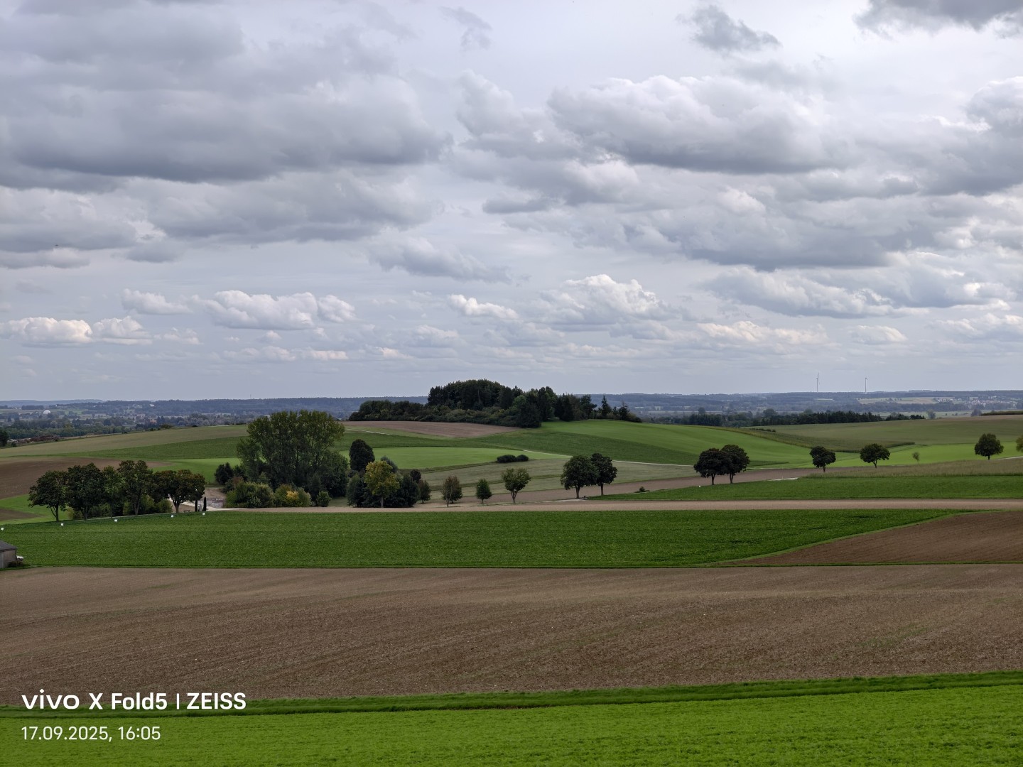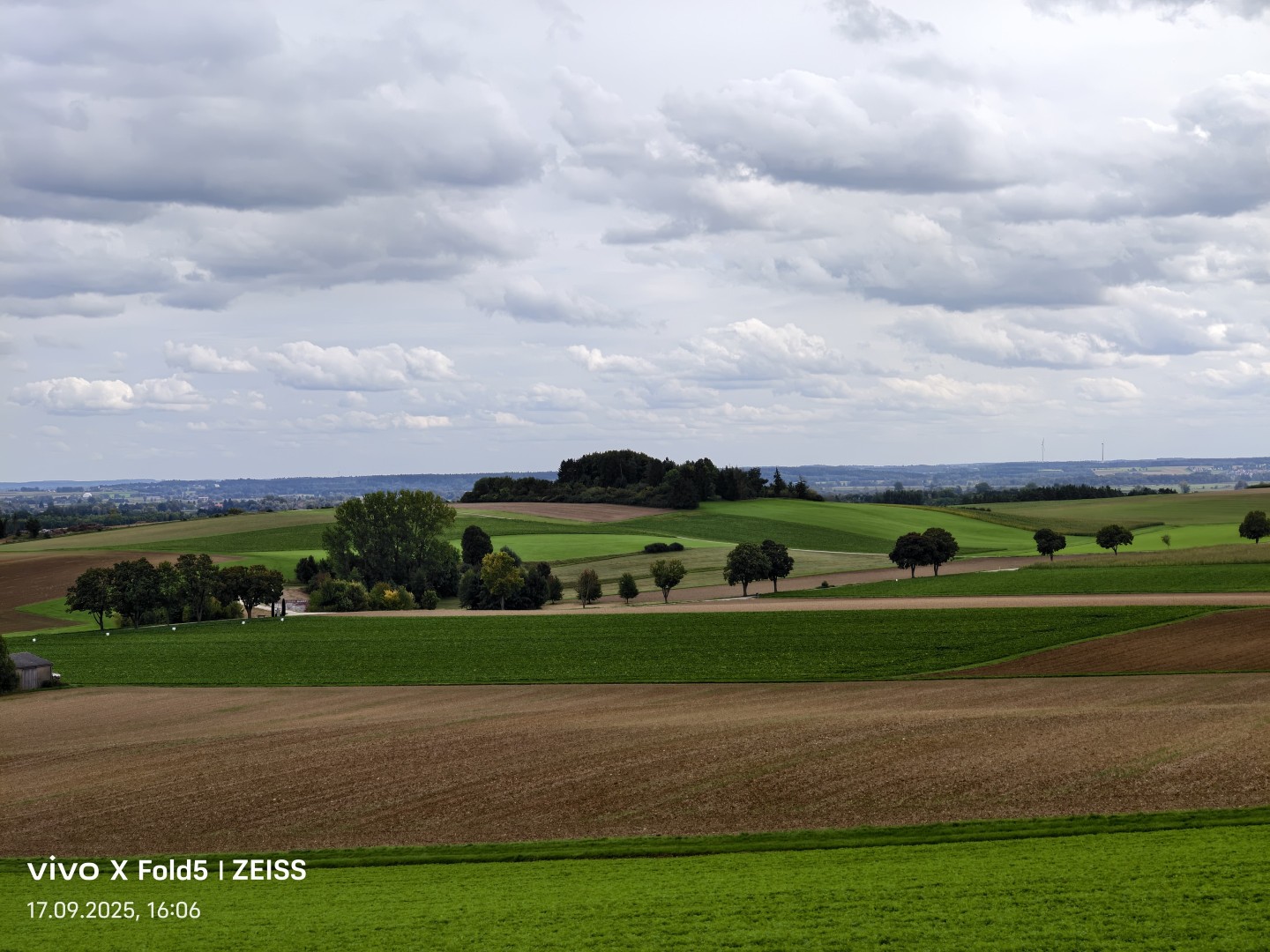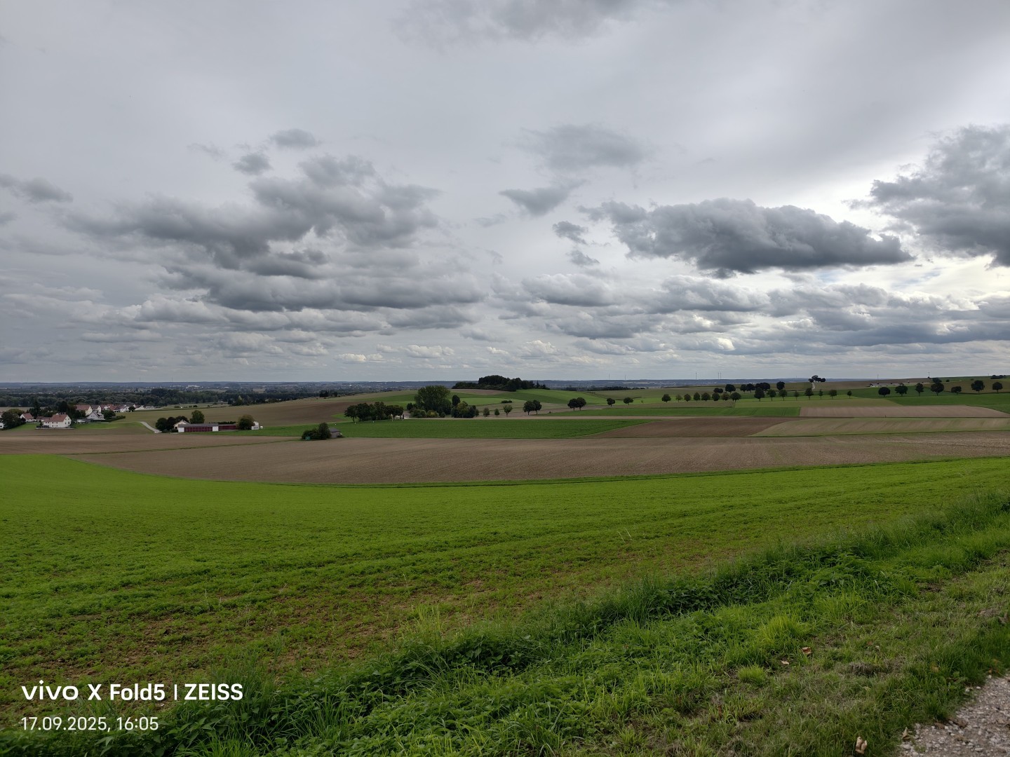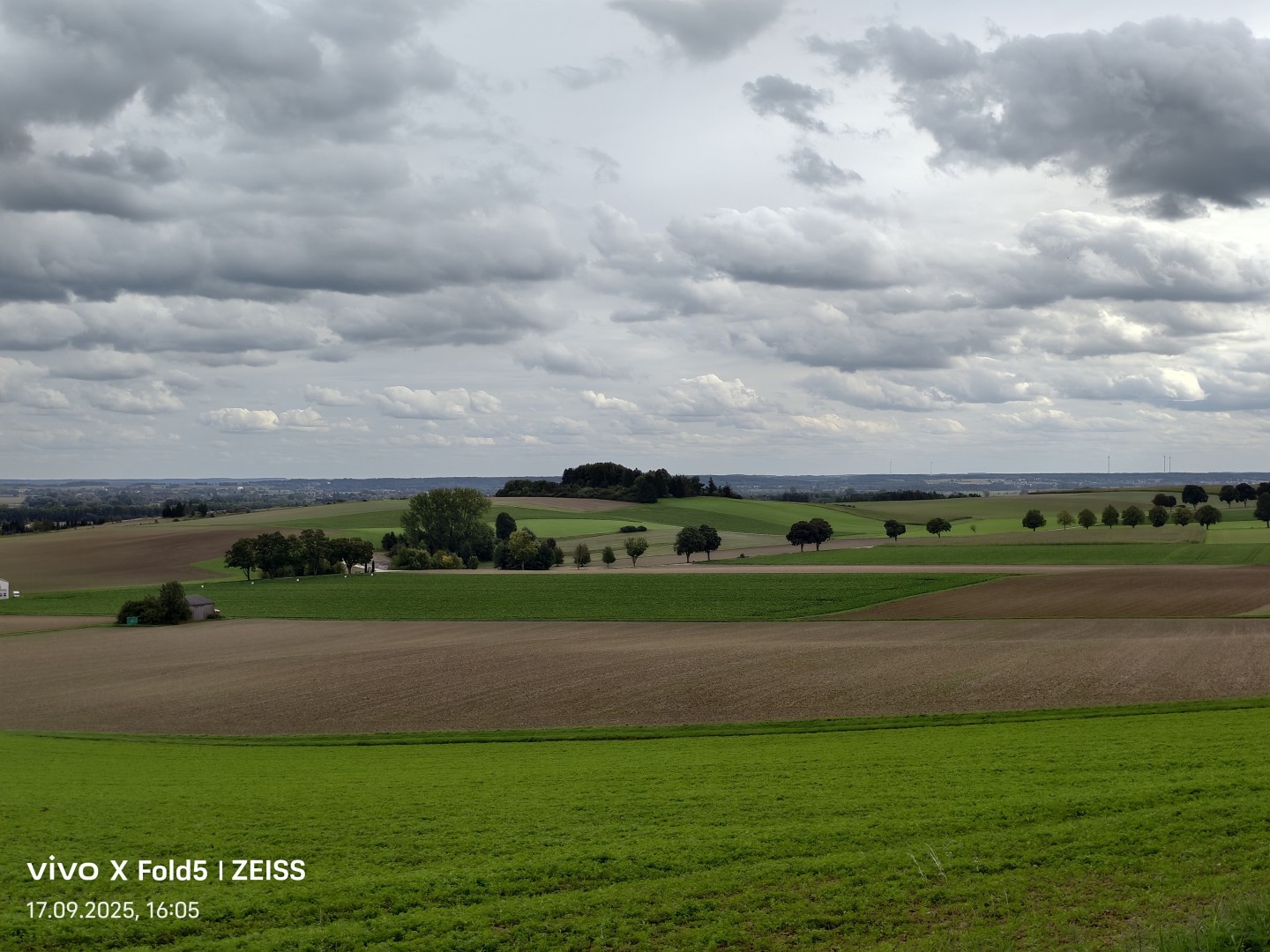 Das sehr weite Blickfeld von circa 120 Grad der Ultraweitwinkel-Kamera im Vivo X Fold 5 fängt weitläufige Szenen wie Grundstücke und Landschaften mühelos ein. Verzerrungen werden per Softwarekorrektur zuverlässig beseitigt. Die Geometrie bleibt also erhalten, gerade Linien zeigen keine Verzerrung. Die Bildschärfe ist gut, auch zum Rand hin. Allerdings zeigt sich etwas mehr Bildrauschen in dunkleren Szenen als bei den restlichen Kameras und auch allgemein ein größerer Qualitätsverlust. Feine Details in Texturen gehen deutlich verloren, je größer der Motivabstand, desto auffälliger wird dieser Effekt. Der Dynamikumfang ist sehr gut. Die Farbtreue überzeugt mit natürlichen Farbtönen im gesamten Spektrum. Der Autofokus sorgt für scharfe Bilder unabhängig vom Abstand. OIS Stabilisierung bietet die Ultraweitwinkel-Kamera nicht.