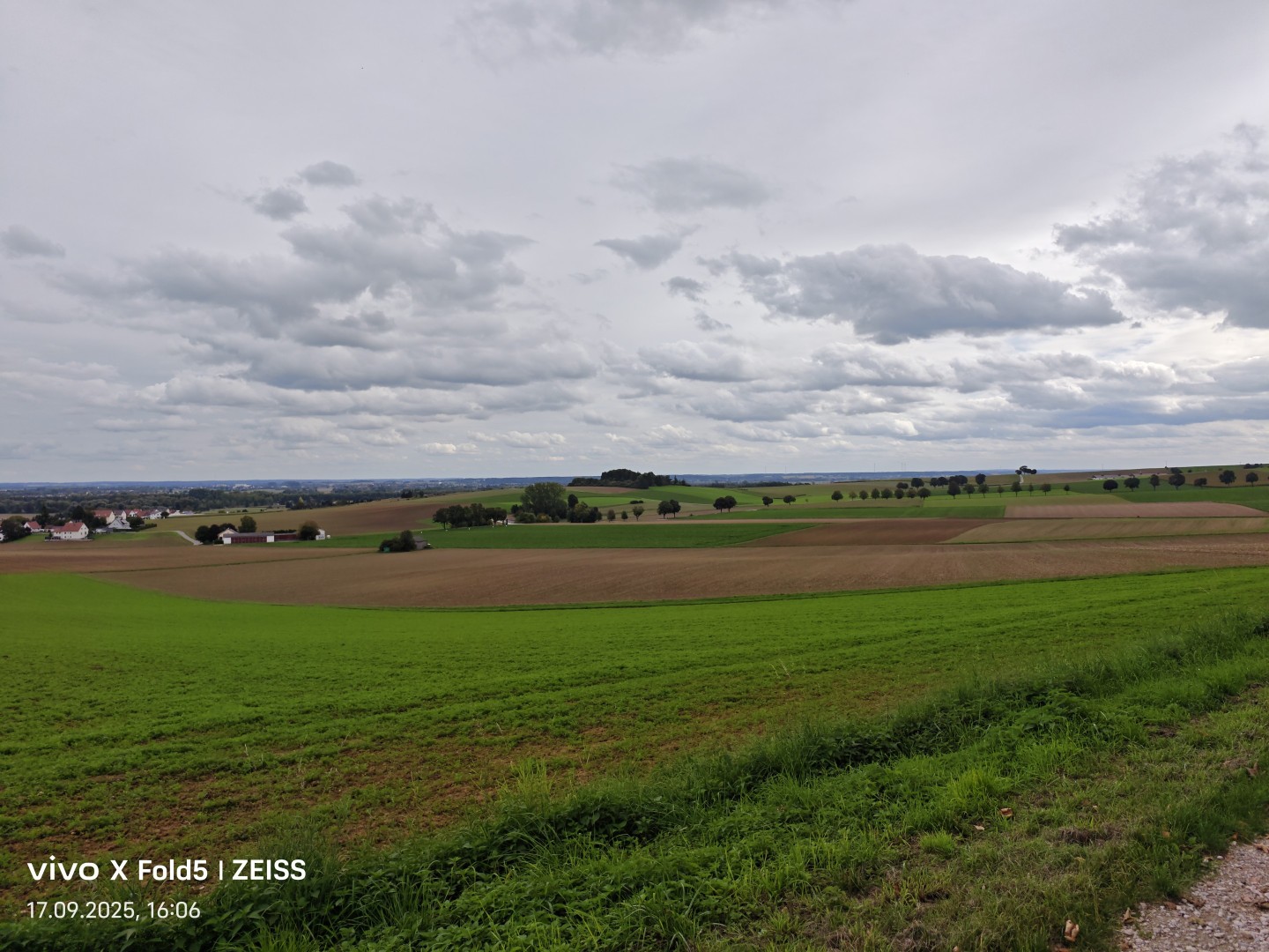 Die Hauptkamera liefert im Standard Modus mit Pixel Binning bei 12MP einen hohen Detailreichtum. Feine Strukturen in Gebäuden, Gräsern, Blättern und landwirtschaftlichen Feldern sind klar erkennbar und auch bei größerer Distanz wirkt die Schärfe der Details noch gut. Die lichtstarke f/1.57-Optik sorgt für helle, gleichmäßige Belichtung und im Zusammenspiel mit dem zuverlässigen Auto HDR für einen guten Dynamikumfang in fordernden Lichtsituationen ohne starke Überstrahlung. Der Weißabgleich zeigt sich ausgeglichen, sowohl warme Abendstimmungen als auch kühle Wolkenformationen wirken natürlich.