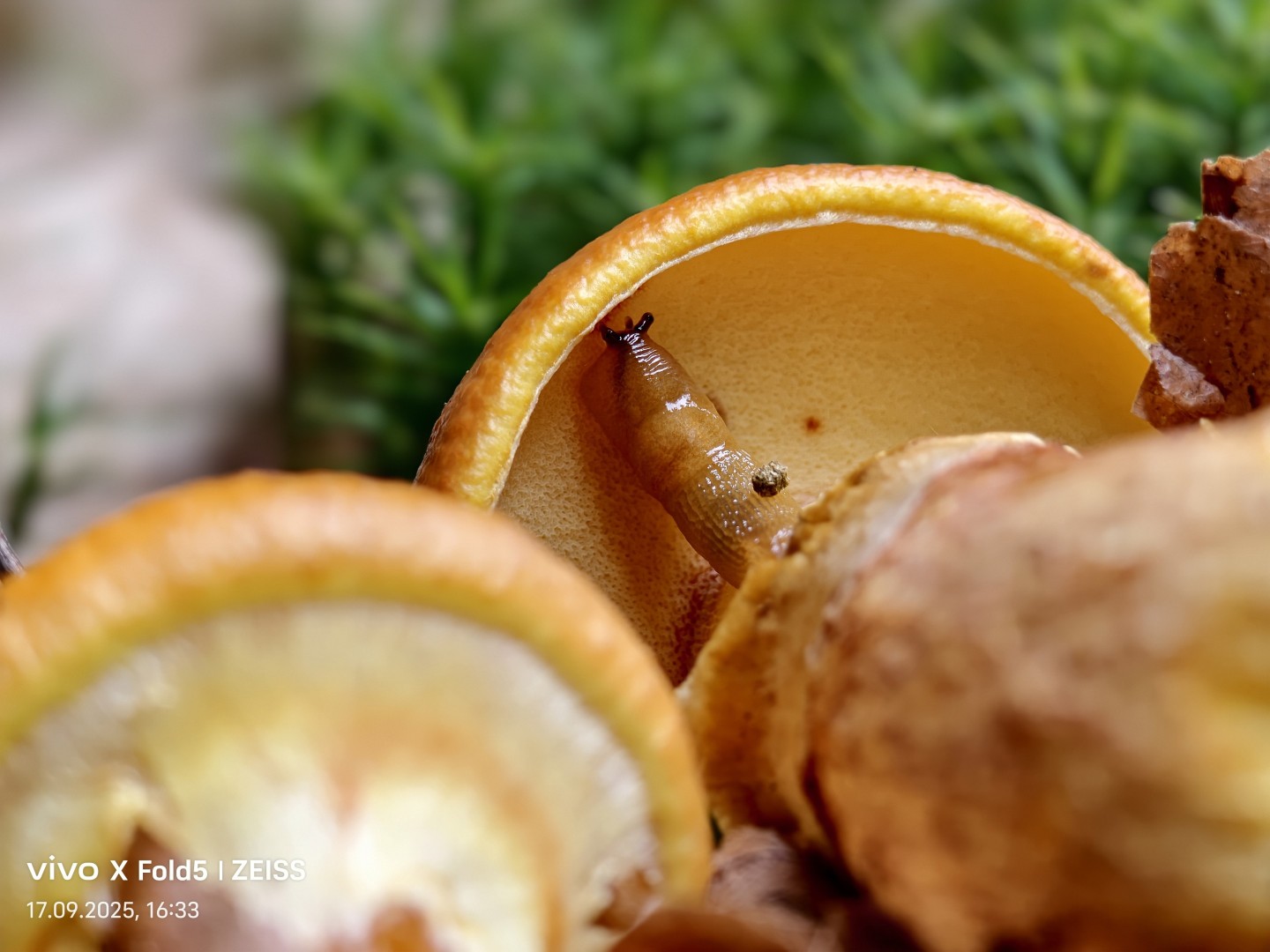Der Makro-Modus vom Vivo X Fold 5 unterstützt alle Kameras, am besten sehen die Ergebnisse mit der Tele-Kamera aus. Alle Aufnahmen wurden damit geschossen. Die Tele-Kamera kann bis auf etwa 15 Zentimeter Abstand fokussieren. Die Detailauflösung ist sehr hoch, feine Strukturen wie Oberflächentexturen, Lamellen, Blattadern oder Textilgewebe sind klar erkennbar. Die Hintergrundunschärfe entsteht optisch durch die Brennweite, nicht künstlich, und wirkt weich und realistisch ohne Maskierungsfehler. OIS stabilisiert auch bei Nahaufnahmen zuverlässig, Verwackeln trotz enger Distanz tritt nicht auf. Die Farbtreue bleibt erhalten, selbst bei komplexen Oberflächen wie Moos, Holz oder Haut. Die Sättigung wird etwas angehoben, was aber stimmig aussieht. Der Autofokus arbeitet präzise, auch bei flachen Objekten oder unregelmäßigen Formen. Der Dynamikumfang bleibt solide. Die Tele-Makro-Funktion eignet sich ideal für Naturdokumentation, Produktdetails, Texturen und künstlerische Makroaufnahmen. Für maximale Qualität empfiehlt sich gutes Licht oder Blitzunterstützung.
