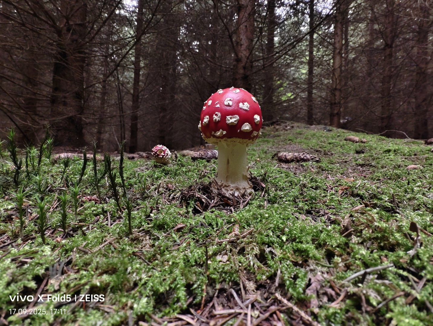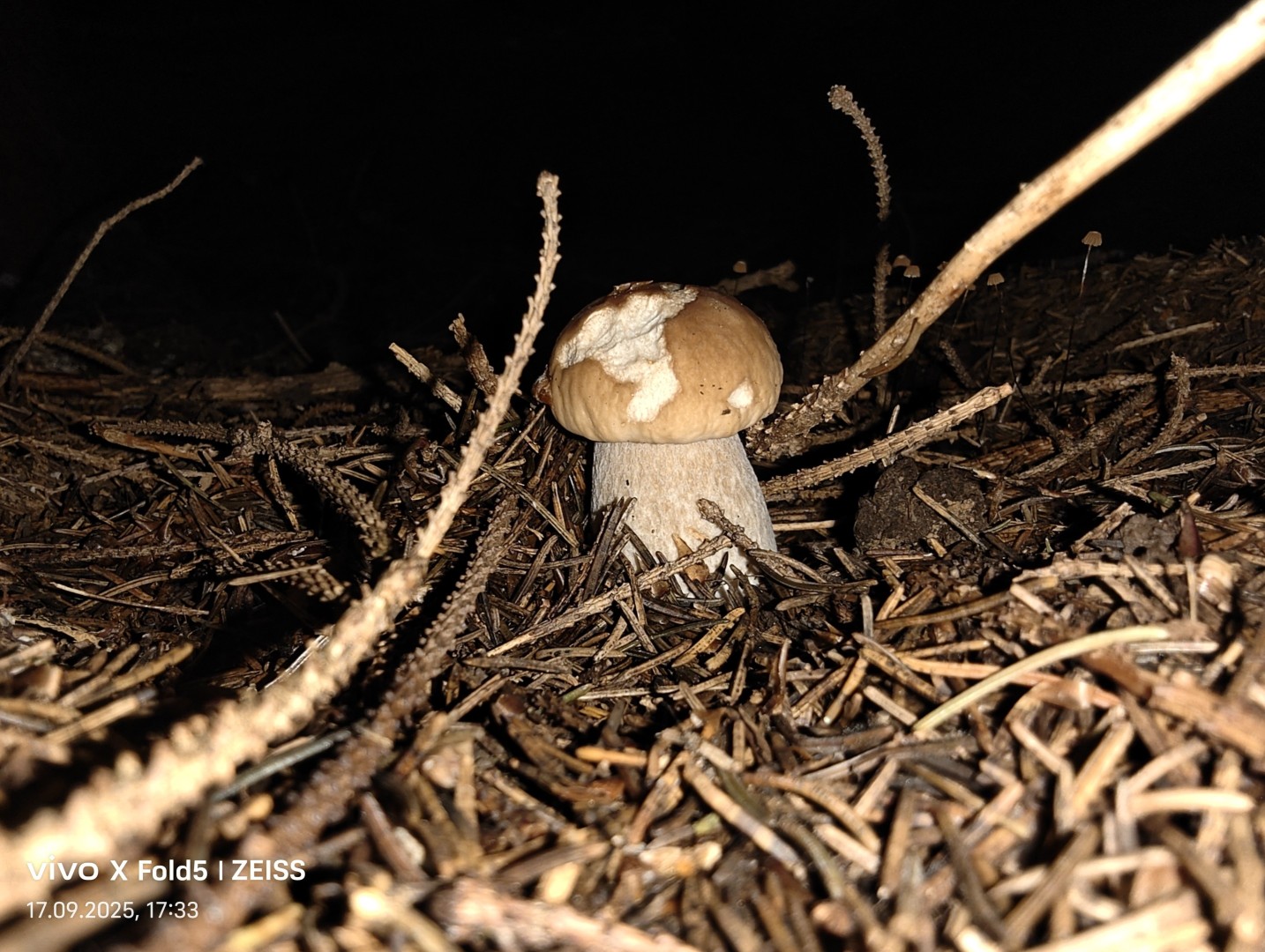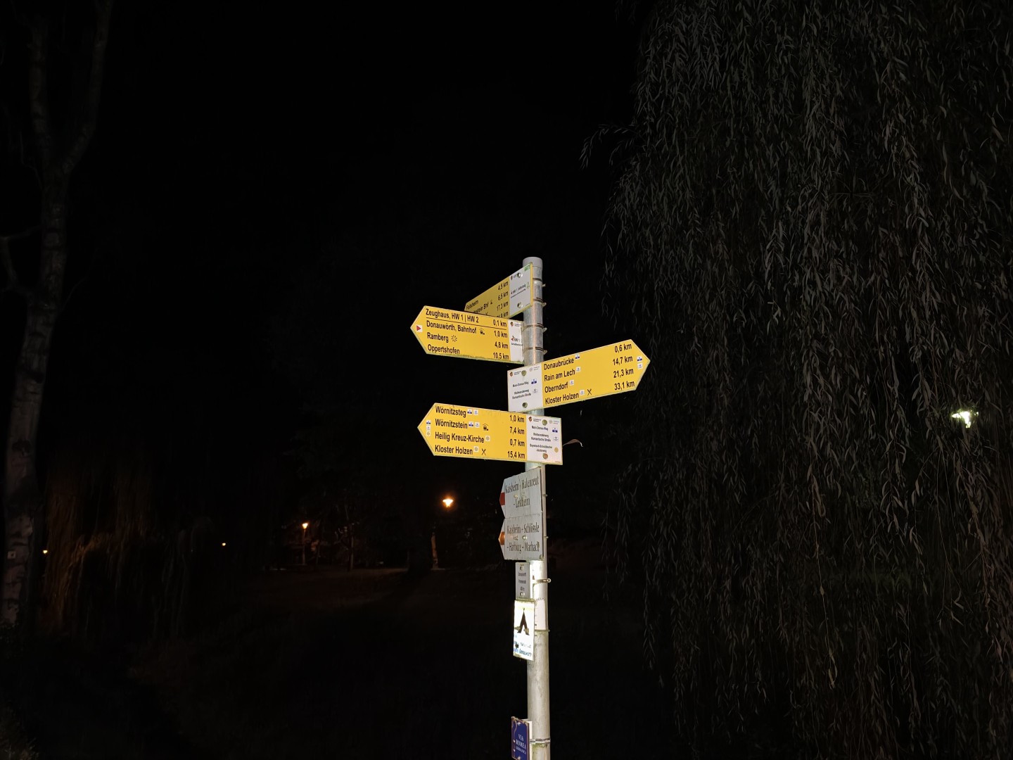 Der Blitz vom Vivo X Fold 5 wird extrem hell und liefert dadurch auch bei größerer Motivdistanz (siehe z.B. den Wegweiser) eine gute Ausleuchtung mit anständiger Bildqualität. Der Weißabgleich fällt weitgehend gut aus und Farben werden nur geringfügig verfälscht, bei manchen Motiven auch gar nicht. Allgemein liefern die Blitz-Aufnahmen eine gute Bildqualität mit wenig Rauschanteil, guter Schärfe und anständiger Detaildarstellung. Als Unterstützung bei Tag eignet sich der Blitz aber nur bedingt. Die beiden Pilzfotos wurden bei Dämmerlicht aufgenommen, wirken aber, als seien sie in der Nacht aufgenommen worden. Die Umgebung wird komplett unsichtbar.