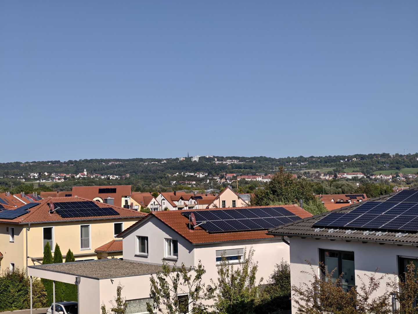 Das Zeiss Farbprofil ist leicht gesättigt aber natürlich wirkend. Gelb- und Grüntöne wirken lebendig, Haut- und Holztöne bleiben natürlich. Der Himmel wird farblich immer realistisch dargestellt, auch bei verschiedenen Lichtstimmungen. Eine Vignettierung an den Bildrändern ist kaum sichtbar, die optische Performance bleibt bis in die Ecken homogen. Chromatische Aberration fällt nicht auf, Strommasten und Hauskanten zeigen keine störenden Farbsäume.