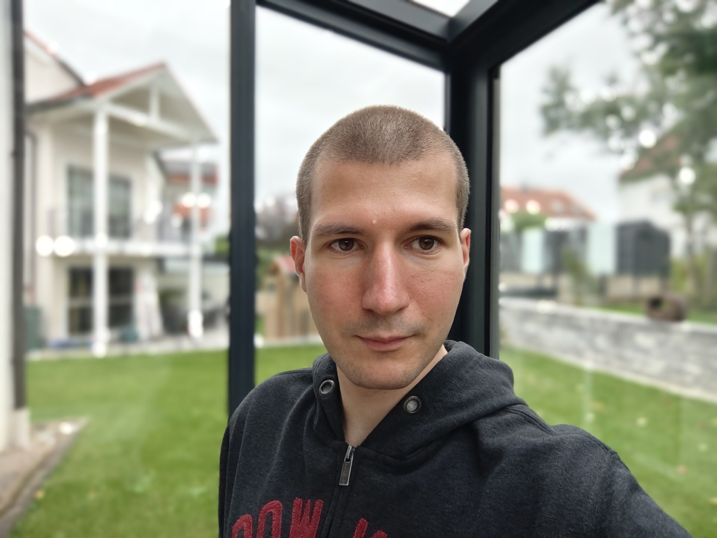 Die Frontkameras im Vivo X Fold 5 arbeiten mit festem Fokus ohne Autofokus. Sie kommen in doppelter Ausführung sowohl im Innen- als auch Außendisplay zum Einsatz. Die 20 Megapixel Auflösung liefert bei Tageslicht reichlich Details, feine Hautporen und Texturen lassen sich erkennen, wenn der Abstand stimmt. Nennenswertes Bildrauschen tritt bei Tag nicht auf, der Dynamikumfang mit Auto HDR ist gut. Bei dämmrigen Innenraumaufnahmen zeigt sich leichtes Bildrauschen. Bei Nachtaufnahmen fällt die Qualität auch mit Bildschirmblitz stärker ab, die Optik wirkt weichgezeichnet und der Detailverlust in feinen Texturen wie Haut, Haar und Kleidung nimmt zu. Der automatische Weißabgleich arbeitet im Tageslicht sehr zuverlässig, Hauttöne wirken neutral. Unter Mischlicht können hingegen Farbstiche auftreten. Verschönerungsfunktionen wie Hautweichzeichnung oder digitales Makeup sollten für beste Bildqualität deaktiviert werden. Für Selfies bei Tageslicht ist die Frontkamera insgesamt sehr gut geeignet. Bei Low-Light empfiehlt sich die Nutzung der Hauptkamera, was über das Außendisplay im aufgeklappten Zustand problemlos möglich ist.