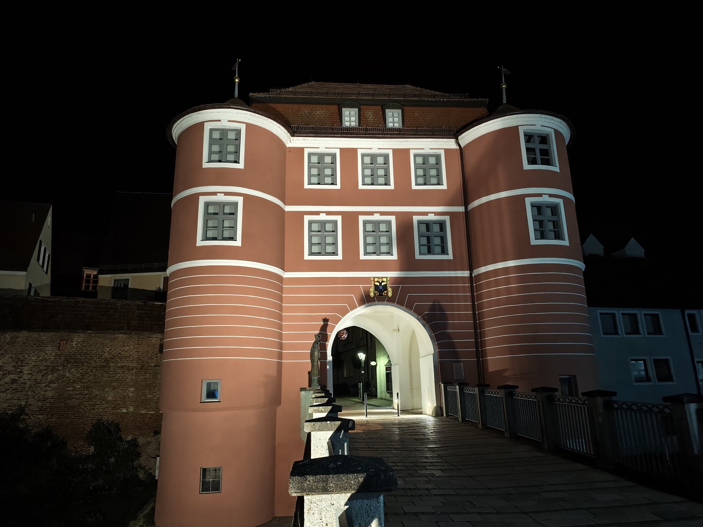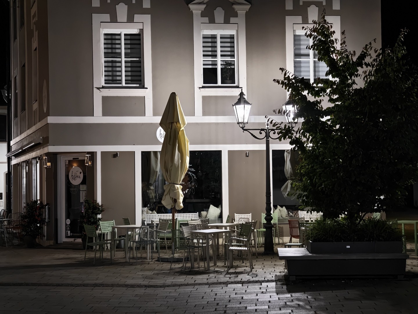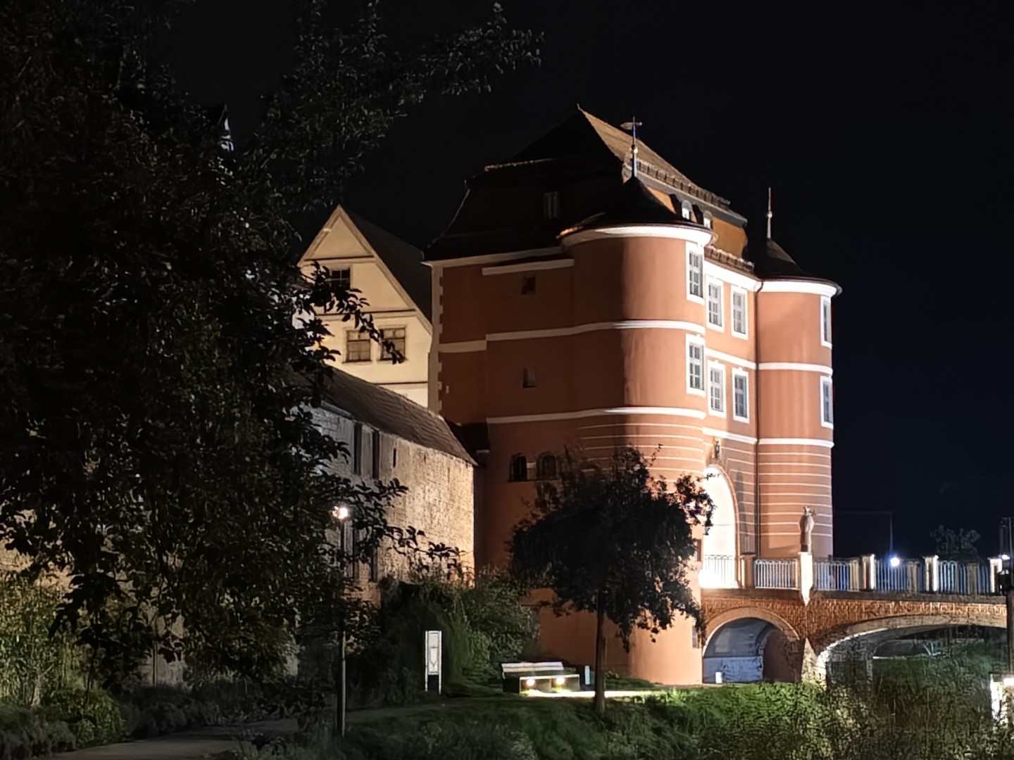 Der Nachtmodus wird durch das Vivo X Fold 5 auch bei der Telekamera automatisch aktiviert. Pixel-Binning liefert eine gute Lichtausbeute mit sehr wenig Rauschanteil. Der optische Bildstabilisator ermöglicht auch freihändig scharfe Bilder. Der Dynamikumfang im Bereich von Lichtquellen ist gut, der Weißabgleich liefert einen stimmigen Gesamtton. Fokusprobleme treten nicht auf. Feine Texturen bleiben gut erhalten. Insgesamt gelingen stimmungsvolle, atmosphärische Nachtaufnahmen auch ohne Stativ.