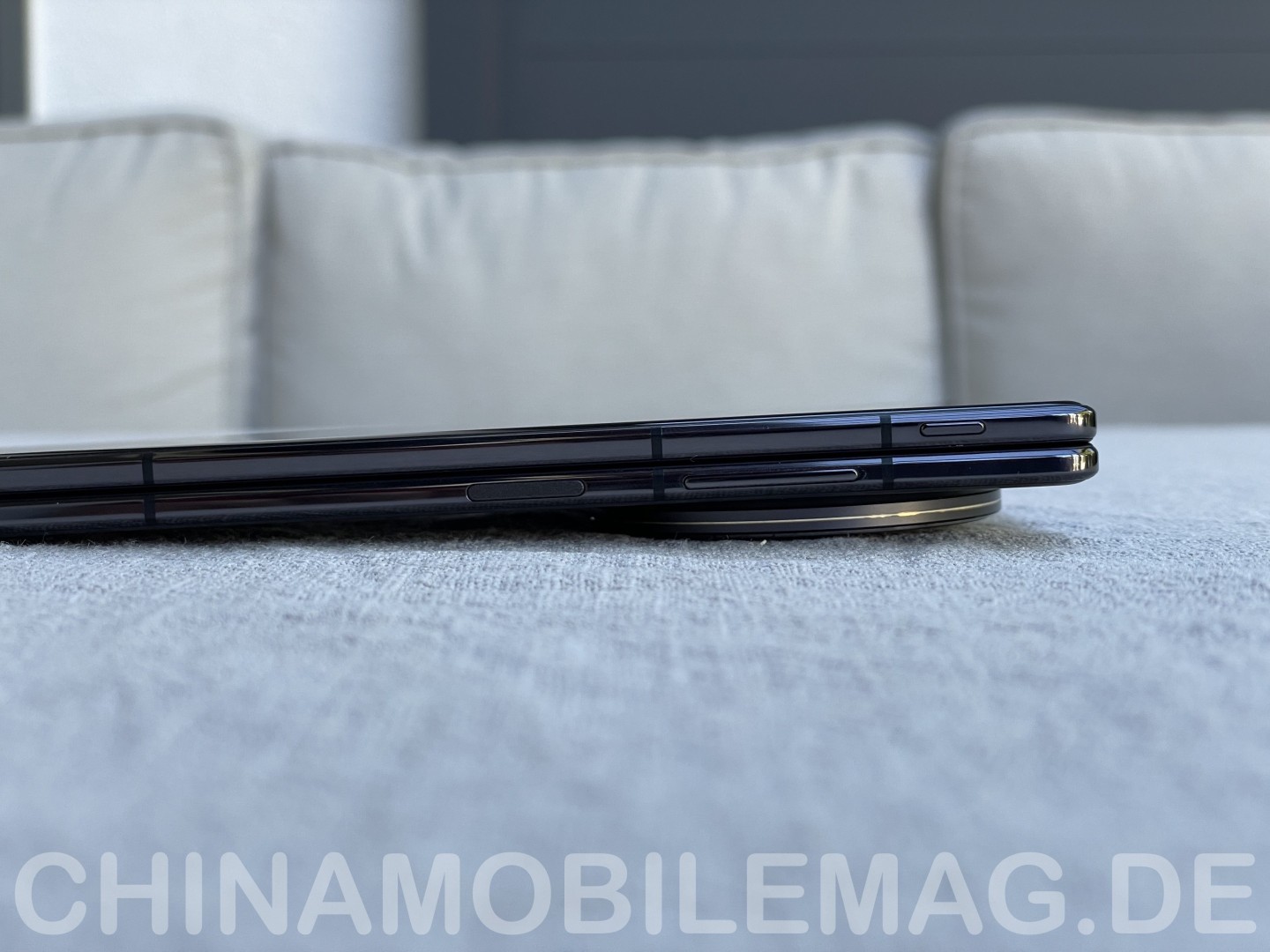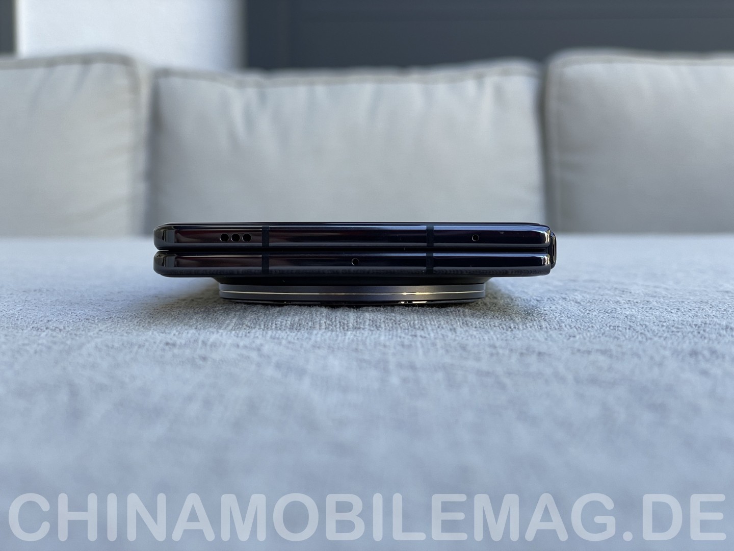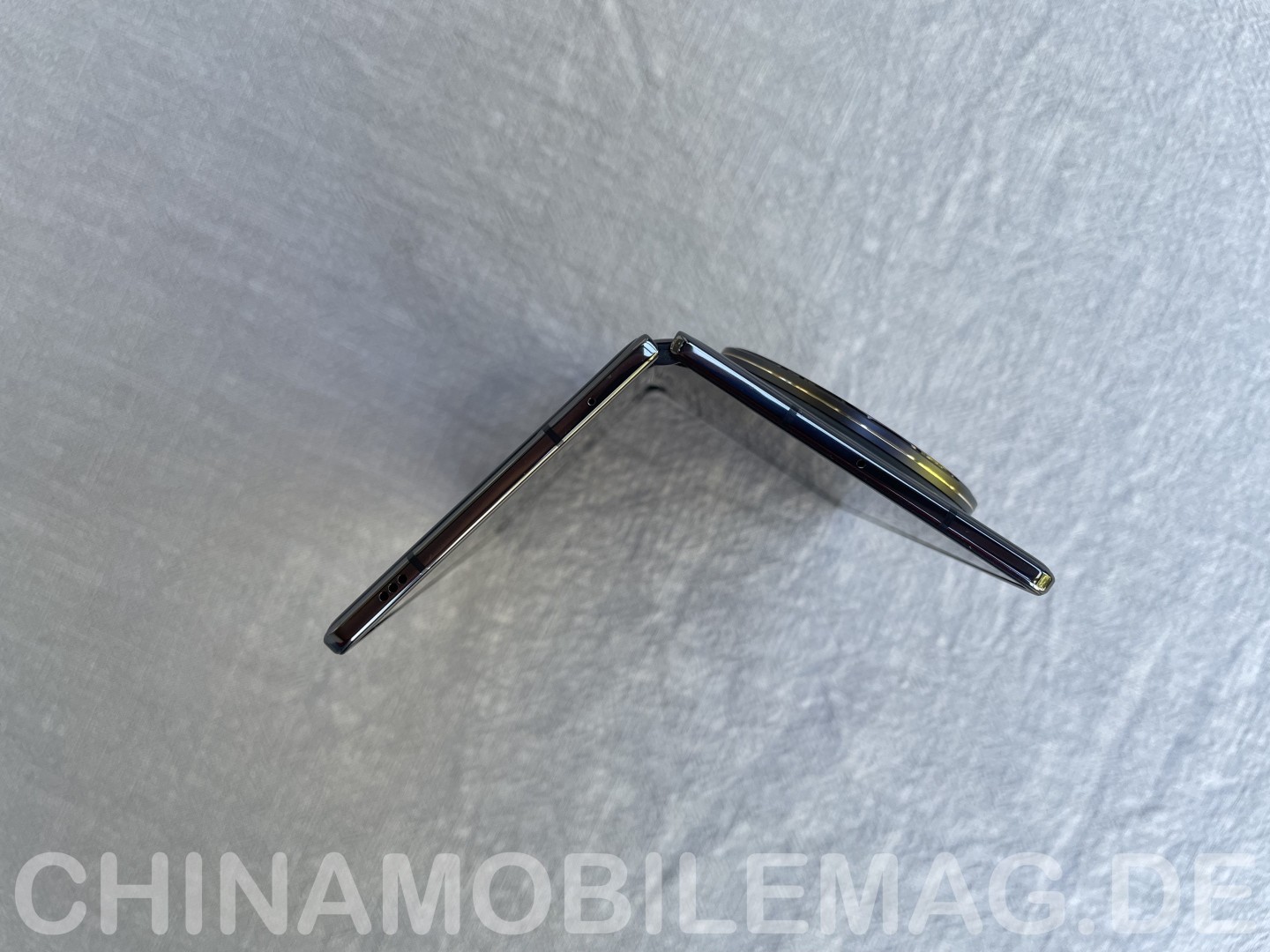 Berücksichtigt man jedoch, wie dünn die beiden Hälften des X Fold 5 sind, ist die Erhebung überraschend gering. Aufgeklappt kommt das X Fold 5 nachgemessen auf 4,6 Millimeter - also geringfügig mehr als vom Hersteller angegeben, aber immer noch sehr dünn. Mit dem Kameramodul sind es zugeklappt 9,9 Millimeter, das Modul ragt also nur 5,3 Millimeter hervor. Für ein High-End Kamerasystem ist das durchaus akzeptabel. Aus ergonomischer Sicht erweist sich das Kameramodul sogar als Vorteil, da es einen bequemen Haltepunkt bei aufgeklappter Nutzung mit einer Hand darstellt.