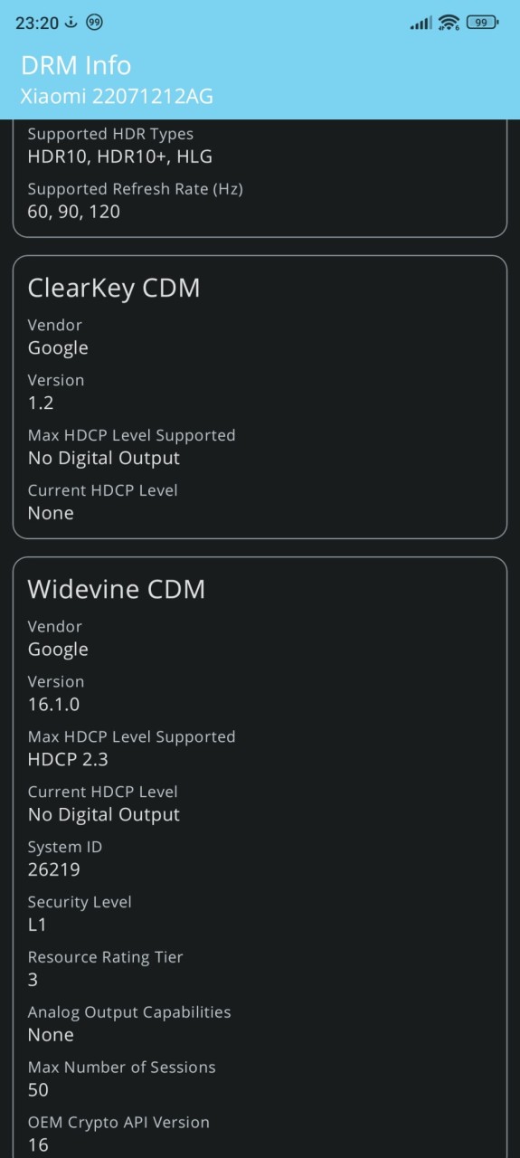 | DRM Technologien | Widevine L1 DRM, ClearKey CDM |