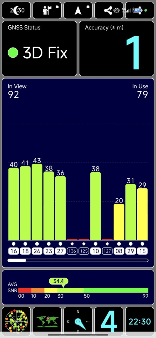 | Positionsbestimmung | GPS (L1+L5), A-GPS, Galileo (E1+E5a+E5b), GLONASS (G1), BDS, QZSS (L1+L5), NavIC (L5) |