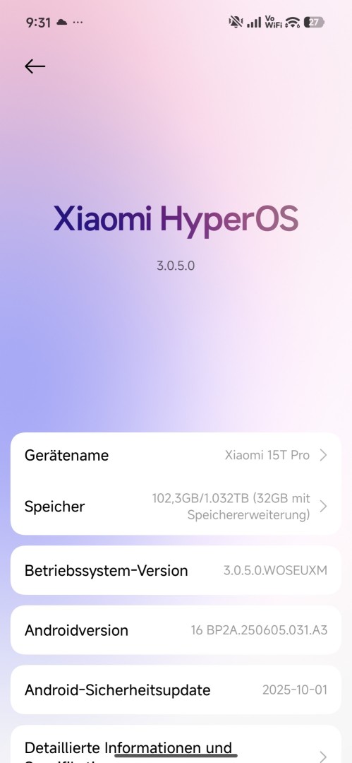 Das Xiaomi 15T Pro wird mit dem auf Android basierenden HyperOS ausgeliefert. Derzeit kommt es mit HyperOS 2, auch wenn sich HyperOS 3 bereits im Rollout befindet. Leider hat das Testgerät im Testzeitraum noch kein Update auf die neueste HyperOS 3 Version erhalten. Etwas enttäuschend, dass Xiaomi sich dabei so viel Zeit lässt. Das Update auf HyperOS 3 wird auch Android 16 mitbringen. Im Testzeitraum lief noch Android 15. Der Sicherheitspatch war im Test auf dem Stand von Oktober 2025 und damit recht aktuell.