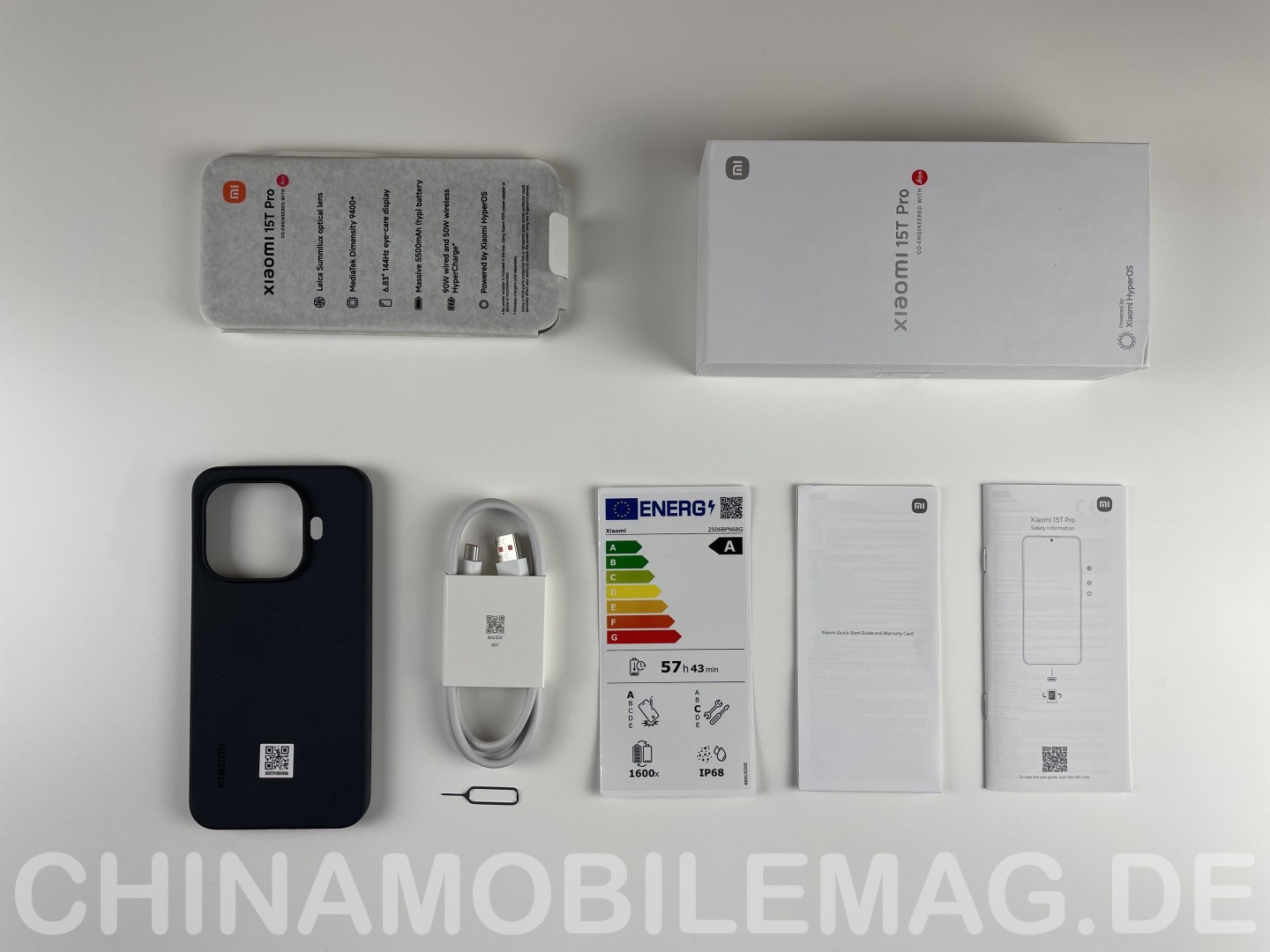 Neu hinzugekommen ist das EU Energie Label, dessen Beigabe seit einiger Zeit verpflichtend ist. Positiv hervorzuheben ist die kunststofffreie Gestaltung der Verpackung im Inneren. Sämtliche Materialien bestehen aus Papier, einschließlich des Schutz-Wrappers um das Xiaomi 15T Pro. Auf dem Display befindet sich bereits ab Werk eine Schutzfolie. Genauere Eindrücke zum Auspacken und Lieferumfang bekommt ihr in unserem separaten Unboxing Video.