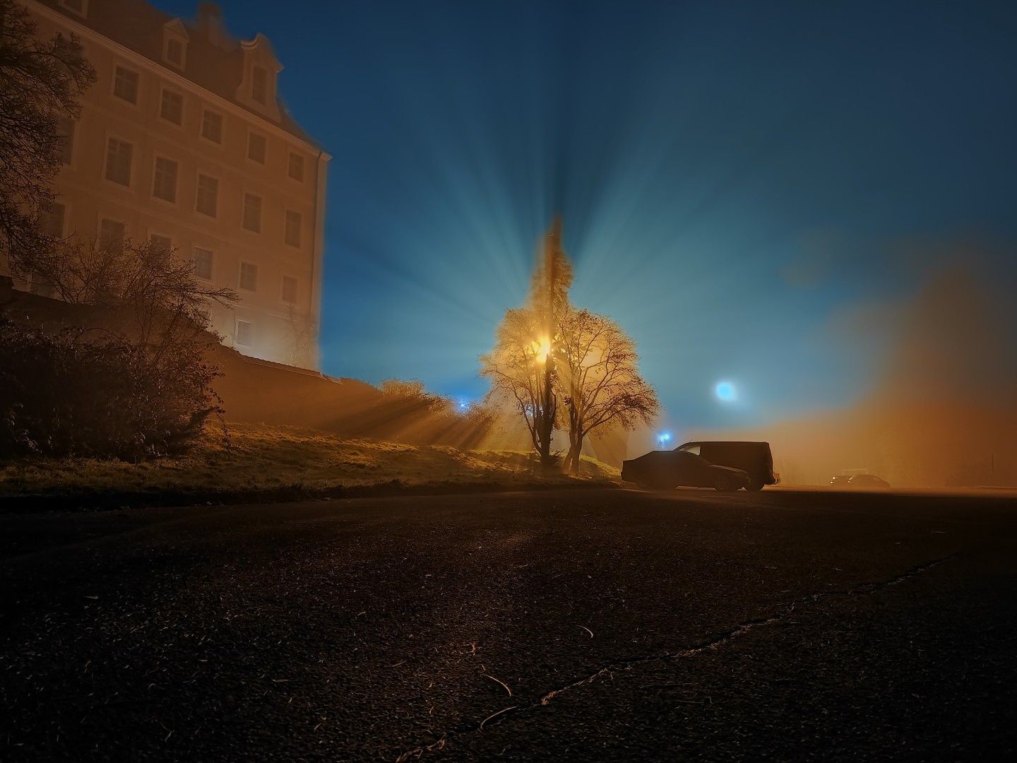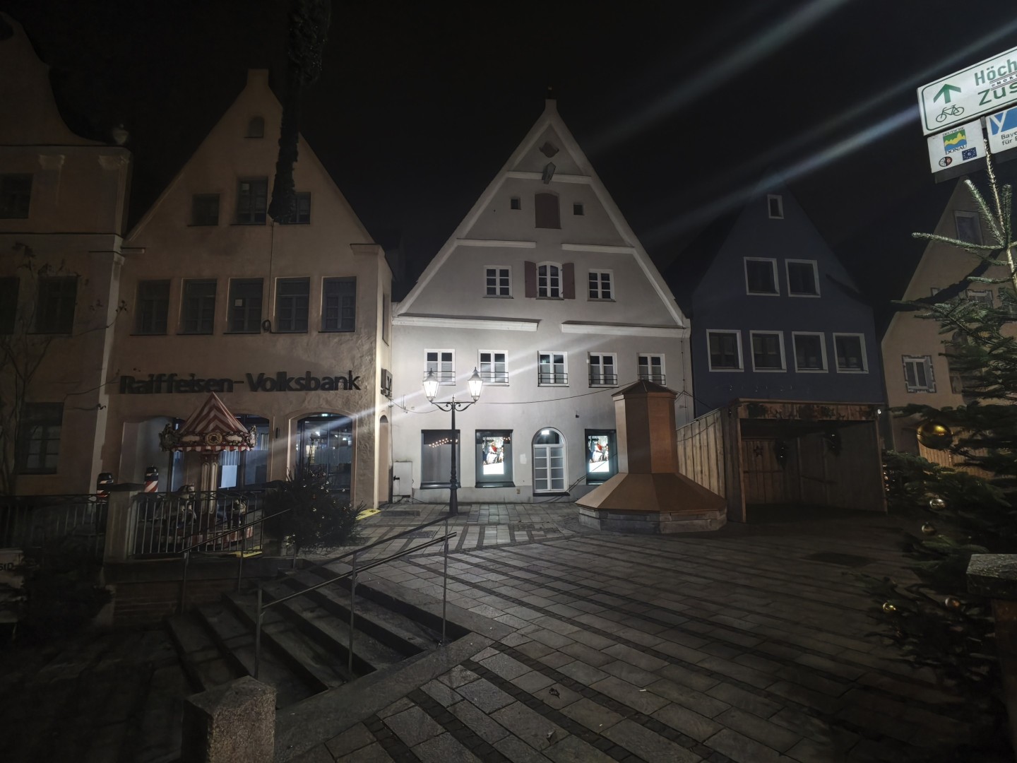 Das Xiaomi 17 Pro liefert mit der Ultraweitwinkel-Linse grundlegend brauchbare Schnappschüsse bei Nacht. Die Bilder wirken aber auch hier recht dunkel. Es zeigen sich deutliche Anzeichen von Rauschunterdrückung mit sehr weichem Aussehen. Extrem störend ist die Neigung zu starken Linsenflecken im Bereich von Lichtquellen, was grauenvoll aussieht. Das Vivo X300 Pro hat hier im Vergleich um Welten besser abgeschnitten.