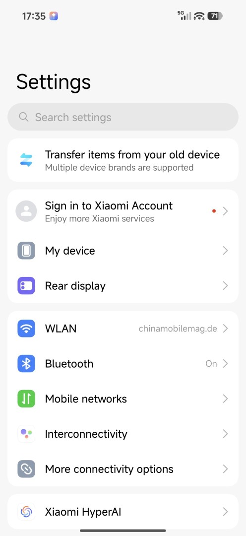 Die China Software bringt die üblichen Einschränkungen mit: keine deutsche Systemsprache, kein Android Auto Support, reichlich Bloatware. Das Rückseiten-Display bleibt für internationale Nutzer ein Gimmick ohne echten Mehrwert. Eine Global Firmware lässt sich nicht nachrüsten, da Xiaomi den Bootloader gesperrt hat und anders als früher kein einfaches Entsperren mehr zulässt.