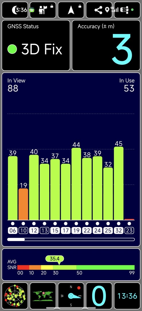 Der GPS Empfang fällt beim Xiaomi 17 Pro auch sehr gut aus. Ein Fix wurde mit 50 Satelliten bei starkem Hochnebel erreicht. Der SNR-Wert lag im GPS Test dennoch deutlich im grünen Bereich. Die Genauigkeit war einwandfrei. Der Praxistest beim Tracking und Navigieren verlief ohne Abweichungen oder Aussetzer, auch in der Hosentasche oder im Auto. Straßenseitenwechsel waren im Track sichtbar.