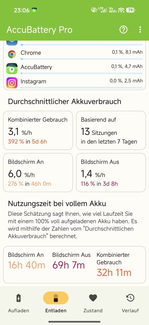 Zwei Tage bei durchschnittlichem Nutzungsmuster stellen kein Problem dar, auch wenn Full Screen AOD und Rückseiten AOD aktiv sind. Ohne AODs, Kameranutzung und Gaming lassen sich auch drei Tage erreichen. Der PCMark Akku Benchmark unterstreicht das mit über 21 Stunden Dauerbetrieb bei 50% Displayhelligkeit.