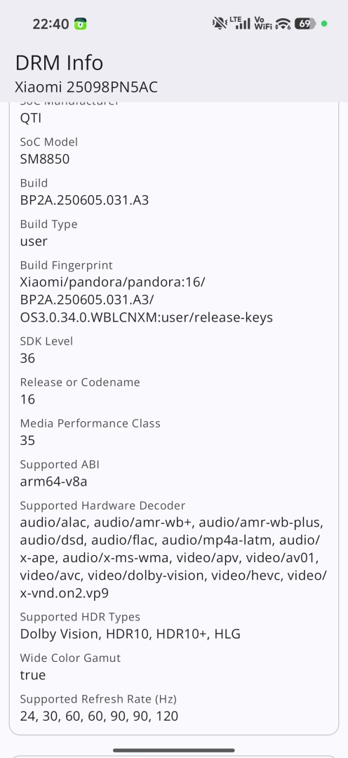 Die Google Zertifizierung ist auf dem Xiaomi 17 Pro vorhanden, unterstützte Google Dienste und Banking Apps funktionieren ohne Probleme. Die Widevine L1 Zertifizierung ist vorhanden, hochauflösendes Streaming ist möglich. Der HDR Support umfasst HDR10(+), HLG und Dolby Vision. Unterstützte Refresh Raten für Videos sind 24, 30, 60, 90 und 120Hz.