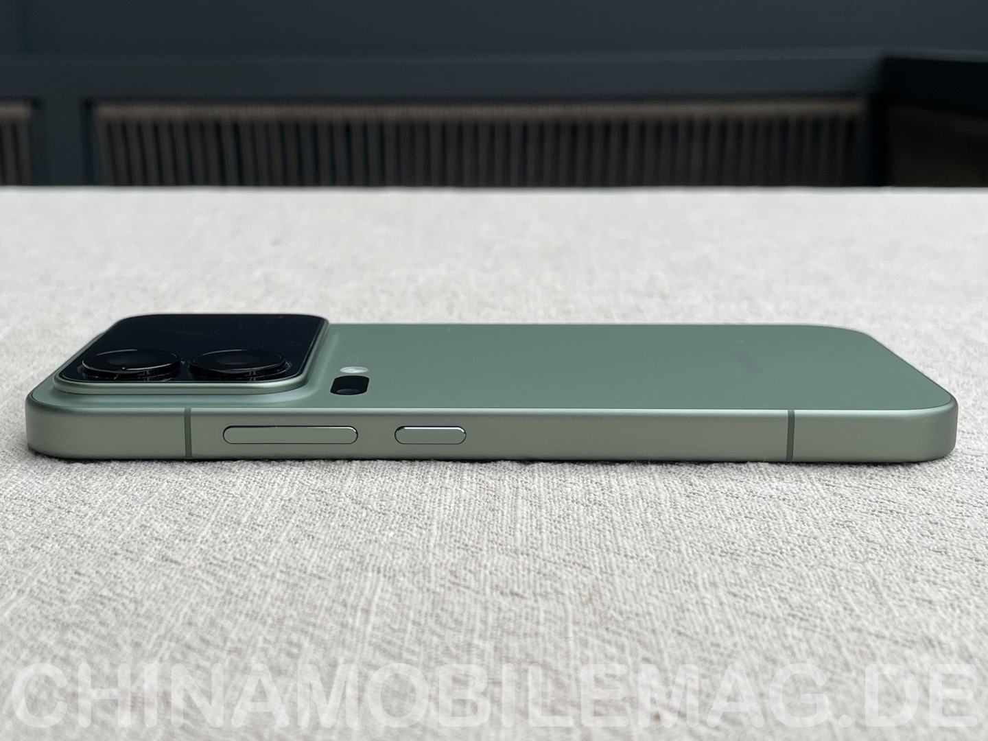 Der Überstand des Kameramoduls beträgt 4,8mm. Dadurch liegt das Xiaomi 17 Pro schief auf dem Tisch auf. Leider kippelt es beim Nutzen auch deutlich, da die beiden Kameralinsen nochmals zusätzlich aus dem Kamerabuckel hervorstehen. Ein bündigerer Abschluss wäre hier die bessere Wahl gewesen. In der Hosentasche fällt der Buckel nicht unangenehm auf. In der Hand bietet er einen guten Haltepunkt für die Finger.