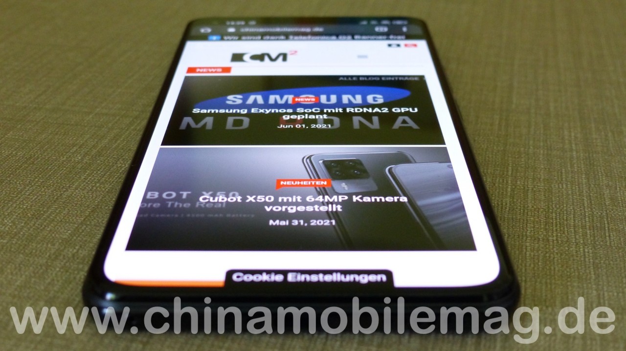 Die Punch Hole Kamera oben im Display lässt sich durch einen schwarzen Hintergrund optional verstecken. Dabei besteht die Möglichkeit den oberen Bereich des Bildschirms entweder komplett zu deaktivieren und damit auch die Infoleiste nach unten zu verschieben, oder eben nur den Hintergrund der Infoleiste schwarz zu schalten. In beiden Fällen fällt die Frontkamera dann kaum noch auf.
