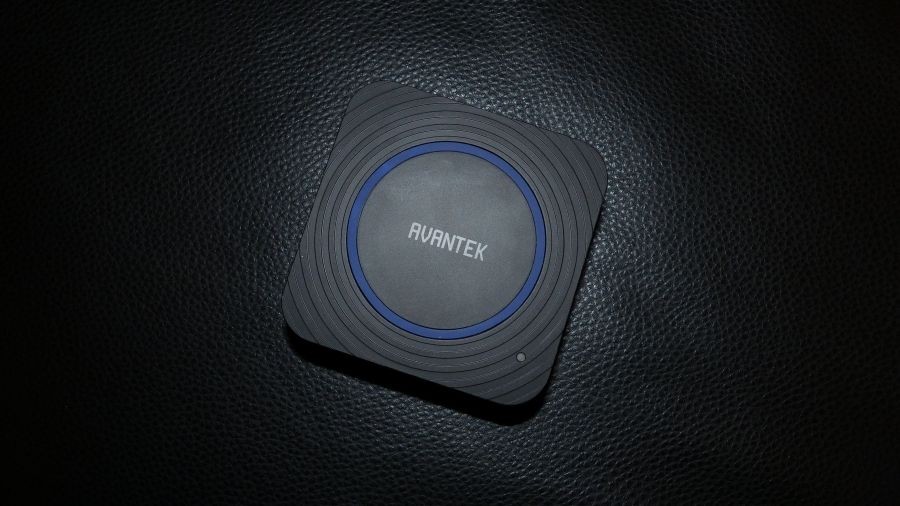 Das Ladegerät selbst kommt in einem schwarzen Kunststoffgehäuse daher, welches dank kreisförmiger Rillen auf der Oberseite und einem blauen Highlight aus Gummi mit dem Avantek Logo in der Mitte schlicht aber ansprechend daher kommt. Die Ecken des Ladegeräts sind abgerundet. Der Footprint des Geräts ist mit Abmessungen von 88 x 88 x 35mm angenehm klein, womit ich das Netzteil bequem auf dem Standfuß von meinem iMac platzieren kann. Die Verarbeitung scheint sehr hochwertig zu sein. Zumindest kann ich keinerlei Fertigungsfehler erkennen. Auch beim Schütteln entstehen keine Geräusche. Auf der Oberseite verfügt der Avantek 4-Port Charger über eine Status LED in der unteren rechten Ecke, welche im Betrieb blau leuchtet. Nach dem Ausstecken des Geräts leuchtet diese auch noch fast eine Minute nach, was von einer etwas hochwertigeren Elektronik im Inneren zeugt. Die vier USB Ports befinden sich an der Front des Geräts, wo sie auch am besten hinpassen. Der Anschluss für das Netzkabel befindet sich auf der Rückseite des Ladegeräts. Auf der Unterseite befinden sich zwei gebogene Gummifüße um ein Rutschen zu verhindern. Diese hätte man sich aber auch sparen können, denn durch das geringe Gewicht des Ladegerätes (172g) haben diese kaum Grip. Außer den Gummifüßen findet man hier auch verschiedene Prüfzeichen wie CE, FCC und RoHS.