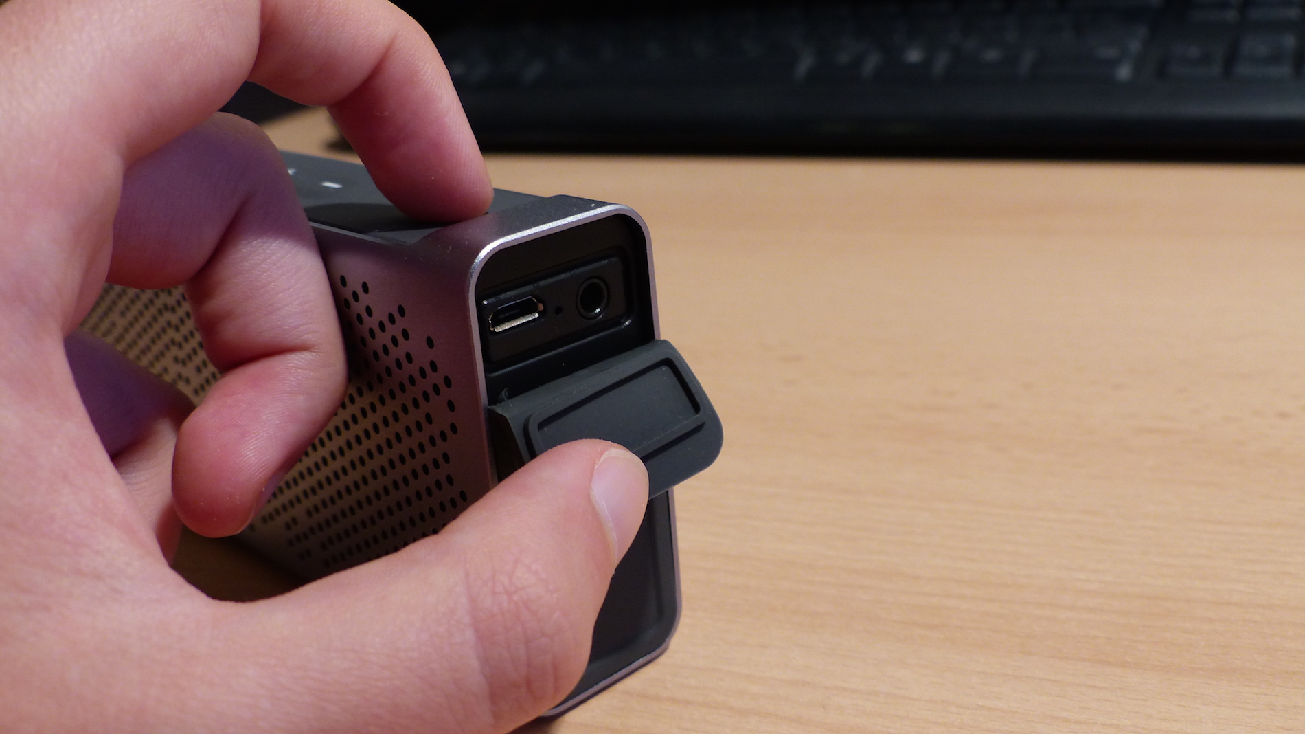 Nachdem nun schon feststeht, dass die Inateck Mercury Box allen voran für den Outdoor Einsatz geeignet ist, stellt sich unweigerlich die Frage ob diesem Anspruch auch der Akku gerecht wird. Ja, das tut er. Inateck verspricht ja eine Leistung von 15 Stunden, was schon sehr viel klingt. Im Alltag muss ich – und das hat mich überrascht – dem Lautsprecher aber eine deutlich bessere Ausdauer zertifizieren. Bei mittlerer Lautstärke hat die Inateck Mercury Box im Test im Bluetooth Betrieb fast 21 Stunden Musikwiedergabe geschafft. Die Angabe von Inateck bezieht sich also wohl auf die maximale Lautstärke. Ohne Bluetooth verlängert sich die Akkulaufzeit noch einmal deutlich. Das Aufladen dauert leider mit 4 Stunden eine ganze Weile.
