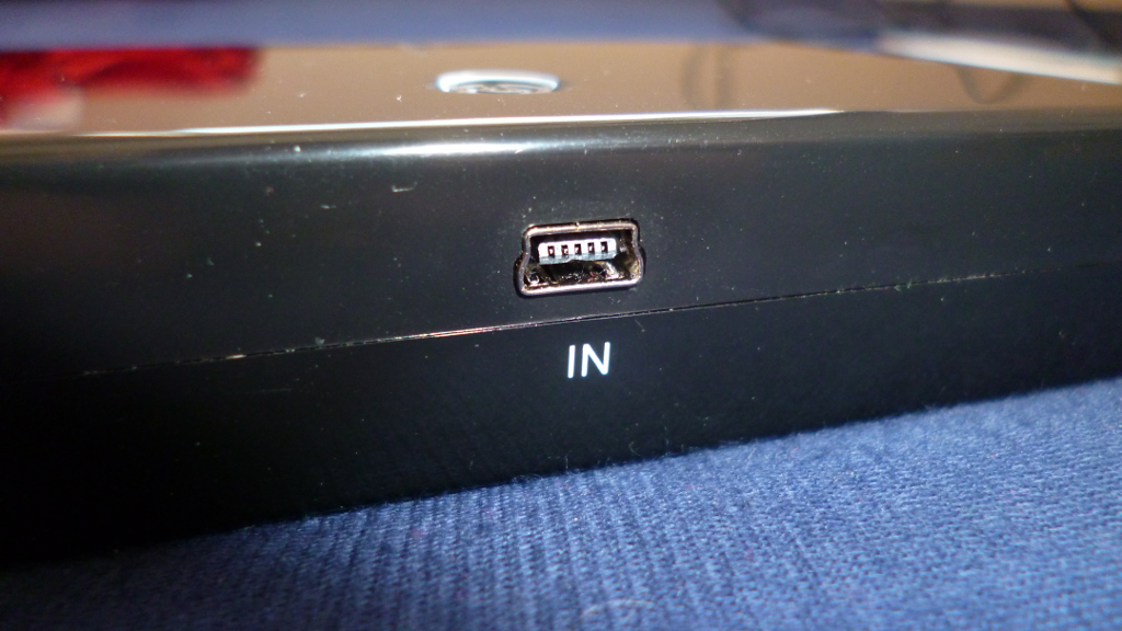 Auf der Front, unter dem Einschaltknopf, befindet sich ein Mini USB Anschluss. Dieser dient zum Aufladen der Power Bank. Um die Power Bank aufzuladen, wird diese Einfach mittels des mitgelieferten Kabels und dem entsprechenden Adapter an ein handelsübliches USB Netzteil angeschlossen. Auch am Computer kann die Power Bank geladen werden, dies dauert aber recht lange.