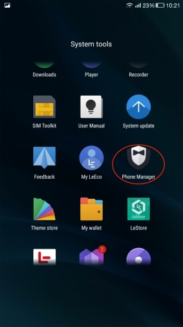Um die restlichen China Apps zu deaktivieren, sucht ihr nach der App "Phone Manager" und öffnet diese.