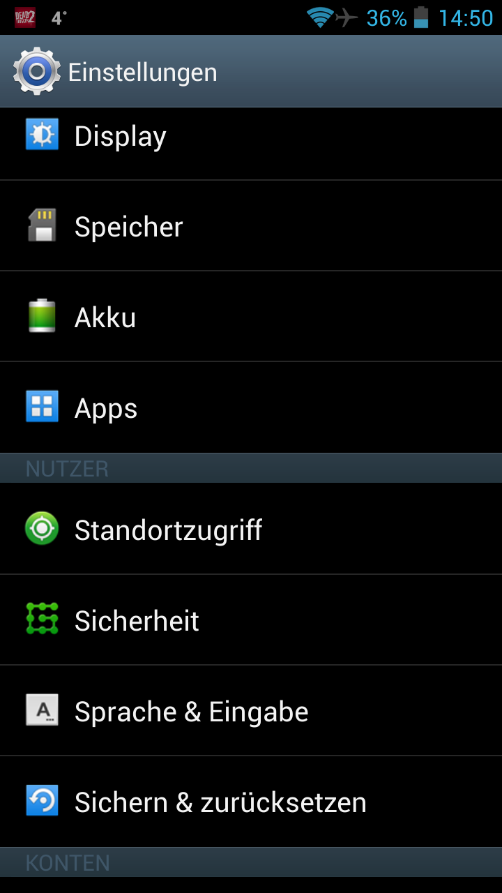 Als erstes öffnet ihr eure Android Einstellungen. Hier scrollt ihr etwas nach unten bis der Eintrag "Standortzugriff" erscheint. Diesen tippt ihr einmal an. Danach seht ihr das folgende Menü.