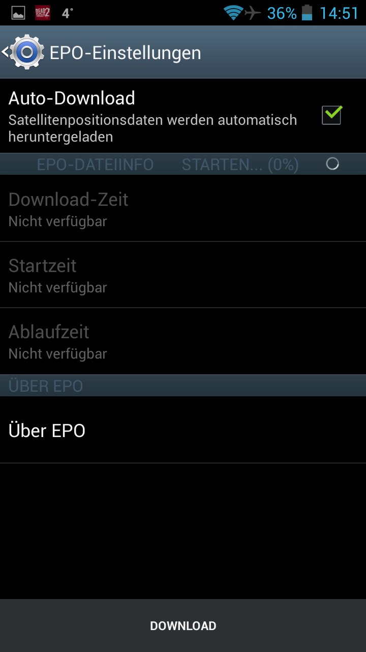Im nun erschienenen Menü setzt ihr einen Haken bei "Auto-Download". Nun sollten die EPO Daten heruntergeladen werden. Dies kann durchaus ein paar Minuten dauern. Sollte der Download fehlschlagen, einfach nochmals mit einen Klick auf "Download" versuchen.