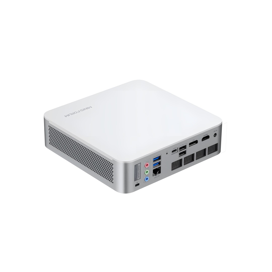 Die Kühlung basiert auf drei Kupfer-Heatpipes in Verbindung mit einem einzelnen Lüfter. Minisforum verspricht ein um 25 Prozent erhöhtes Luftvolumen gegenüber nicht näher spezifizierten Vorgängermodellen. Die Gehäuseseiten weisen großflächige Lüftungsschlitze auf, um den Luftstrom zu optimieren. Zusätzlich kommt ein Phasenwechselmaterial zur Wärmeableitung zum Einsatz.