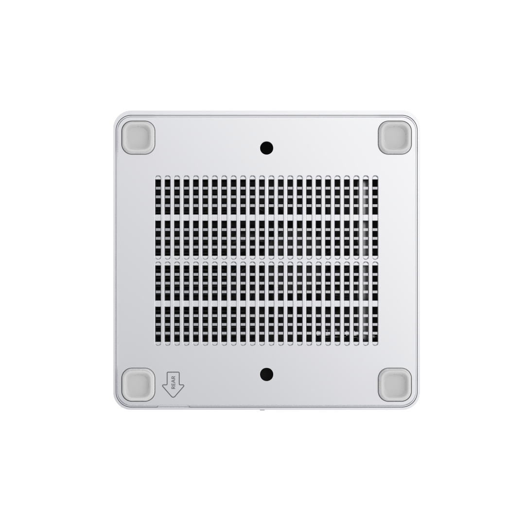 Das Kühlsystem nutzt ein sogenanntes Phase Change Material (PCM) zur Wärmeübertragung, kombiniert mit einem klassischen Blower Fan. Laut Hersteller bleibt die Geräuschentwicklung selbst unter Last mit weniger als 45dB in einem moderaten Bereich. Mit einem Gewicht von etwa 0,6kg lässt sich der Rechner zudem per VESA Halterung direkt hinter einem Monitor montieren.