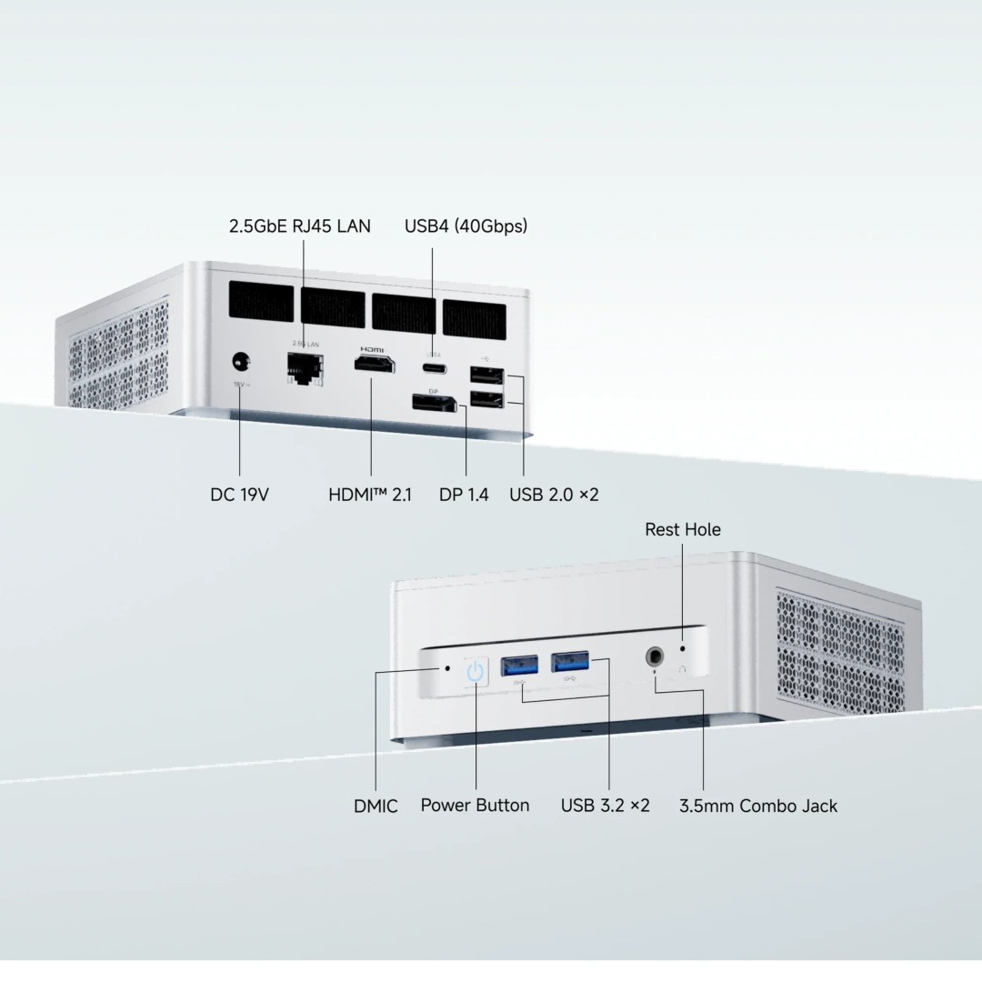 Trotz der geringen Abmessungen von 130 x 126 x 50,4mm bietet der Minisforum M1 Lite gute Möglichkeiten zur Aufrüstung. Das Gehäuse beherbergt zwei DDR5 SO-DIMM Steckplätze, die bis zu 96GB Arbeitsspeicher mit einer Geschwindigkeit von 5600MHz unterstützen. Für den Datenspeicher stehen zwei M.2 2280 PCIe 4.0 SSD Slots zur Verfügung.