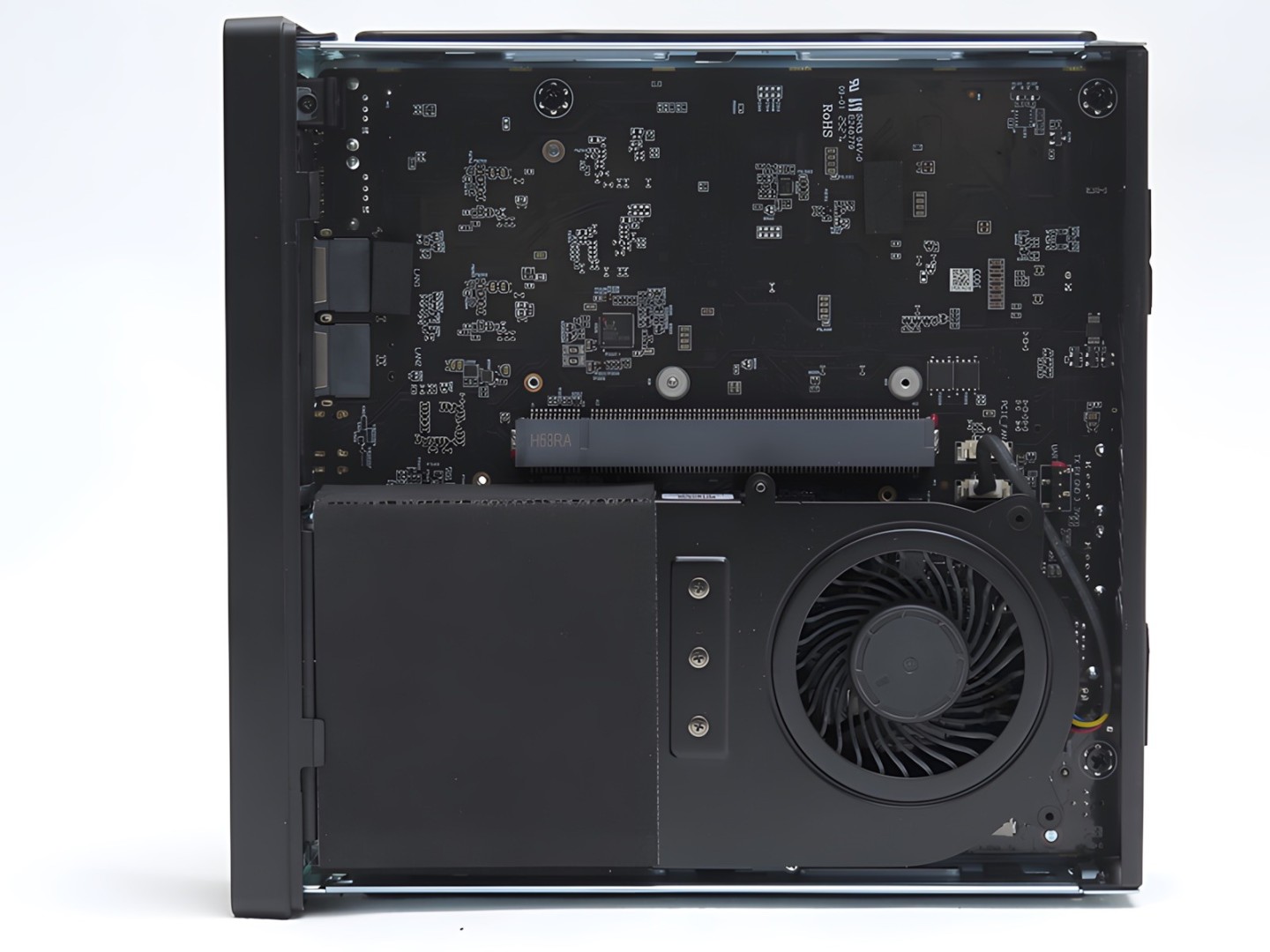 Eine Besonderheit des MS-R1 ist der PCIe 4.0 x16 Steckplatz, der intern mit acht Lanes angebunden ist. Dies ist bei ARM-basierten Systemen und auch Mini PCs im allgemeinen außergewöhnlich und ermöglicht theoretisch den Einsatz dedizierter Grafikkarten oder anderer PCIe-Erweiterungskarten, sofern entsprechende für ARM Plattformen entwickelte Treiber verfügbar sind. Für Entwickler und Bastler bietet das System zusätzlich einen 40-Pin GPIO-Header, eDP-Anschluss, UART-Pin sowie Anschlüsse für I2C Touch und auch ein TPM Header.