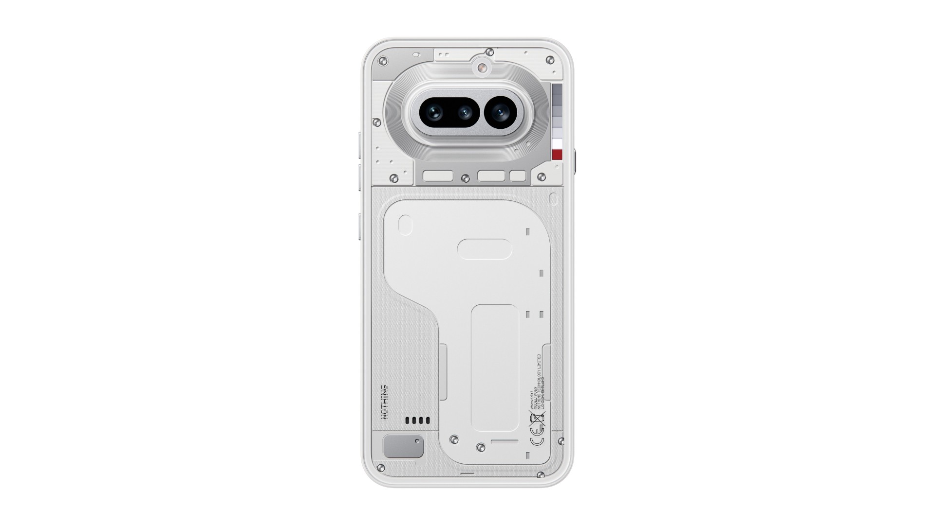 Das Das Nothing Phone 4a setzt auf ein Gehäuse mit Metallrahmen und Glasflächen, dessen transparente Rückseite einen Blick auf das Innenleben freigibt - wenn auch nur auf eine Zwischenschicht darunter, nicht auf die Elektronik selbst. Neu gestaltet wurde die Kameraregion: Statt einer durchgehenden Leiste verteilen sich die Objektive nun auf zwei separate Glasabdeckungen. Daneben sitzt die neue Glyph Bar, ein knapp zweieinhalb Zentimeter langer Streifen aus 63 Mini-LEDs in sieben quadratischen Zonen, die Benachrichtigungen, Timer und andere Statusmeldungen visualisiert. Eine separate rote LED zeigt an, wenn das Gerät gerade aufnimmt. Das Gehäuse ist nach IP64 gegen Staub und Spritzwasser zertifiziert. Nothing gibt zusätzlich an, das Gerät bei einer Tiefe von 25cm für bis zu 20 Minuten getestet zu haben.