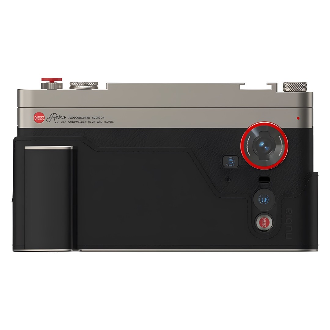 Neben dem für Nubia Geräte typischen physischen Auslöser am Gehäuserahmen bietet Nubia optional ein professionelles Fotografie-Kit an. Dieses besteht aus einem Handgriff mit mechanischen Bedienelementen und ermöglicht die Verwendung von Filtern und Aufsteckobjektiven über einen T-Mount-Adapter. Die Konstruktion kombiniert Leder, Titan und Aluminium und soll das Smartphone in Richtung einer klassischen Kamera erweitern. Das Kit kostet zusätzlich 699 Yuan, umgerechnet also etwa 85 Euro.