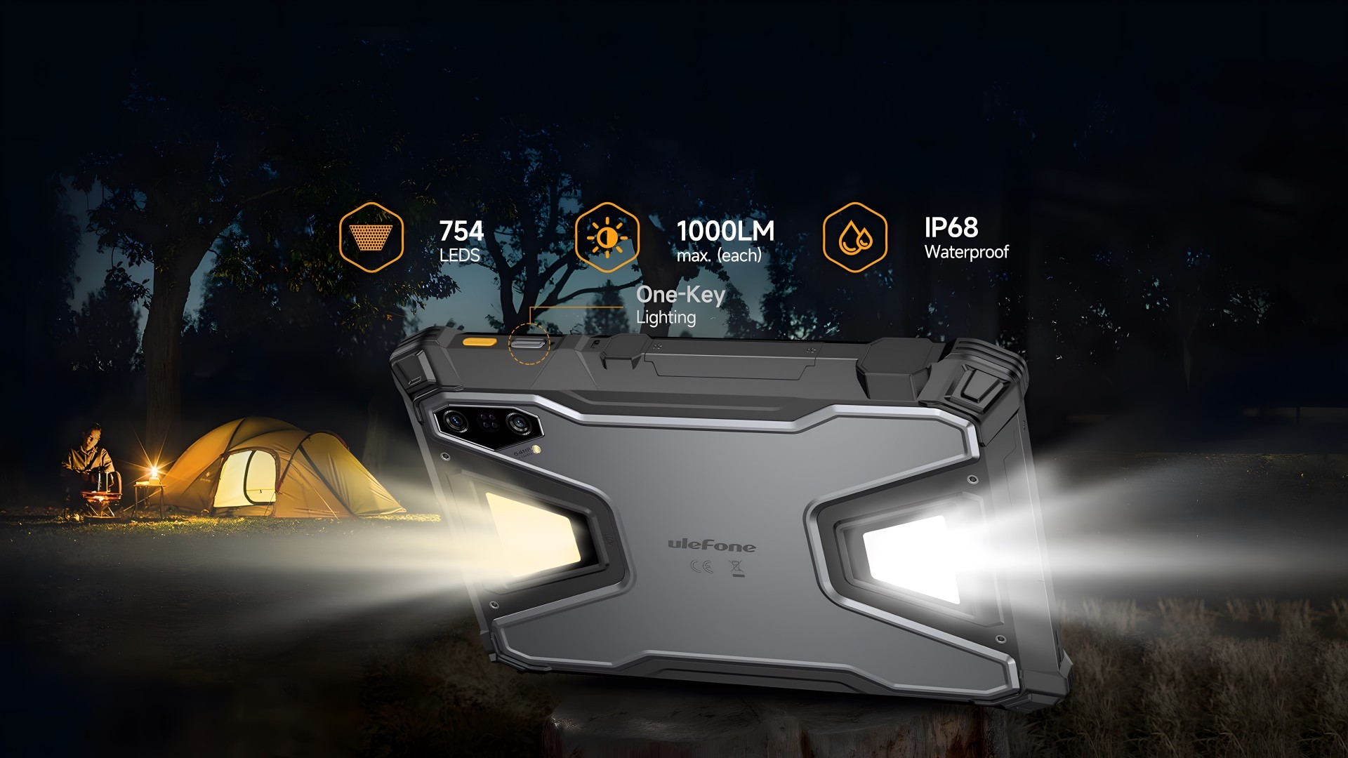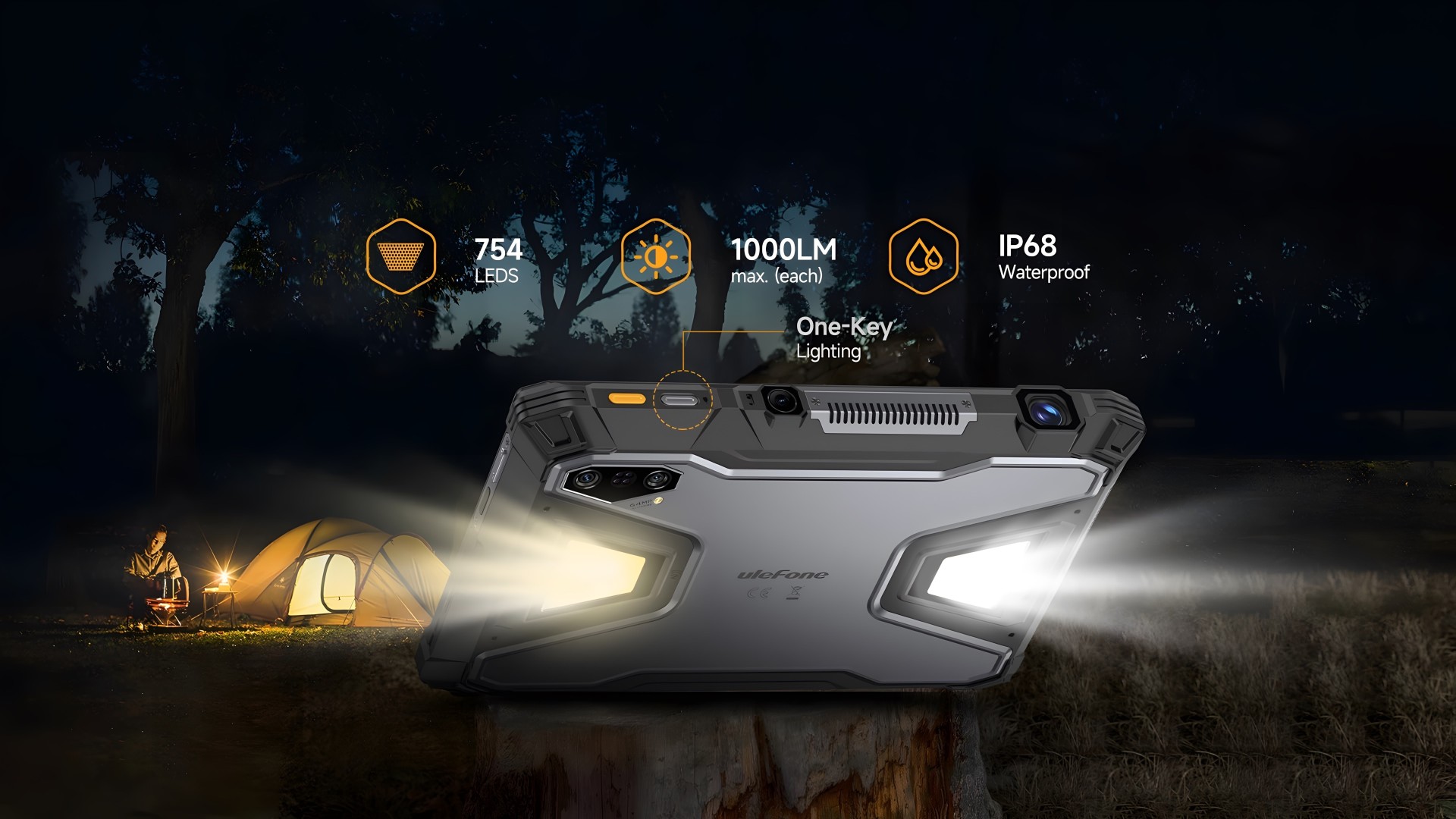Ein charakteristisches Merkmal der Armor Pad Serie ist die integrierte LED-Beleuchtung auf der Rückseite. Die neue Generation bietet 754 LEDs mit bis zu 1000 Lumen Helligkeit und maximal 6,8 Watt Leistungsaufnahme. Die Beleuchtung ist nach IP68 wasserdicht und kann in verschiedenen Modi betrieben werden: warmes Licht, weißes Licht oder eine Kombination aus beiden. Es stehen vier Beleuchtungsmodi zur Verfügung: normale Beleuchtung, scharfes Licht, SOS und Dauerlicht.