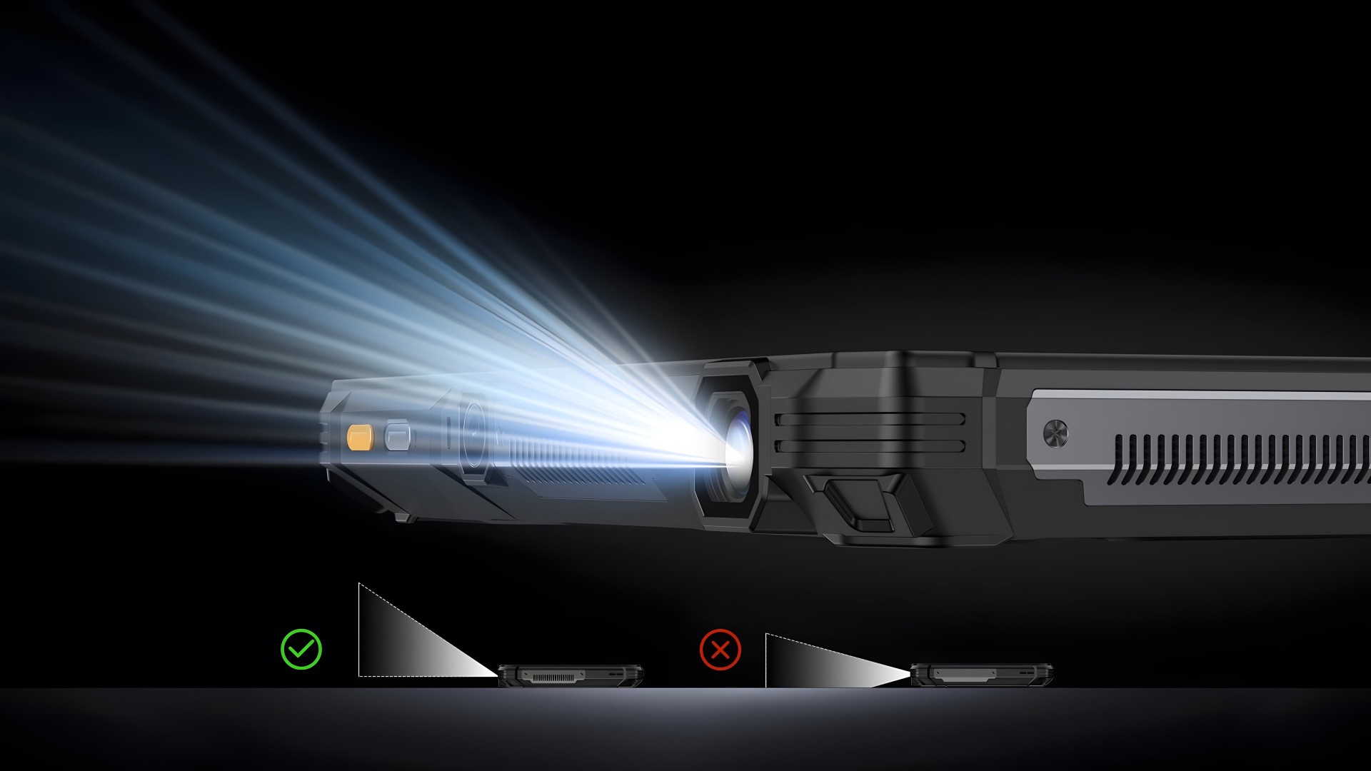 Der wesentliche Unterschied zwischen dem Ulefone Armor Pad 5 Pro und dem Ulefone Armor Pad 5 Ultra liegt in der Ausstattung des Ultra-Modells mit einem integrierten Projektor. Dieser liefert bis zu 200 Lumen Helligkeit und projiziert mit einer Auflösung von 960 x 540 Pixeln. Der Projektor verwendet ein 0,23 Zoll DMD-Element und arbeitet mit einem Projektionsverhältnis von 1,2:1. Die Bildgröße kann zwischen 40 und 80 Zoll liegen, was einem Projektionsabstand von etwa 1,063 bis 2,134 Meter entspricht. Der Projektor verfügt über automatische Trapezkorrektur bis +-40 Grad sowie automatischen oder manuellen Fokus. Die Projektion erfolgt mit einem Auswurfwinkel von 26 Grad nach oben und einem 100-prozentigen Versatz.
